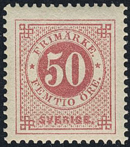 Sweden. Facit 36 ★★, 50 öre red. Superb quality. SEK 7000