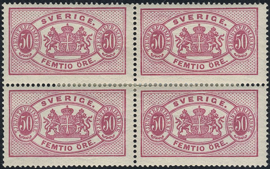 Sweden. Official Facit Tj22B ★, 50 öre red, perf 13, type II. In block of four. SEK 9600