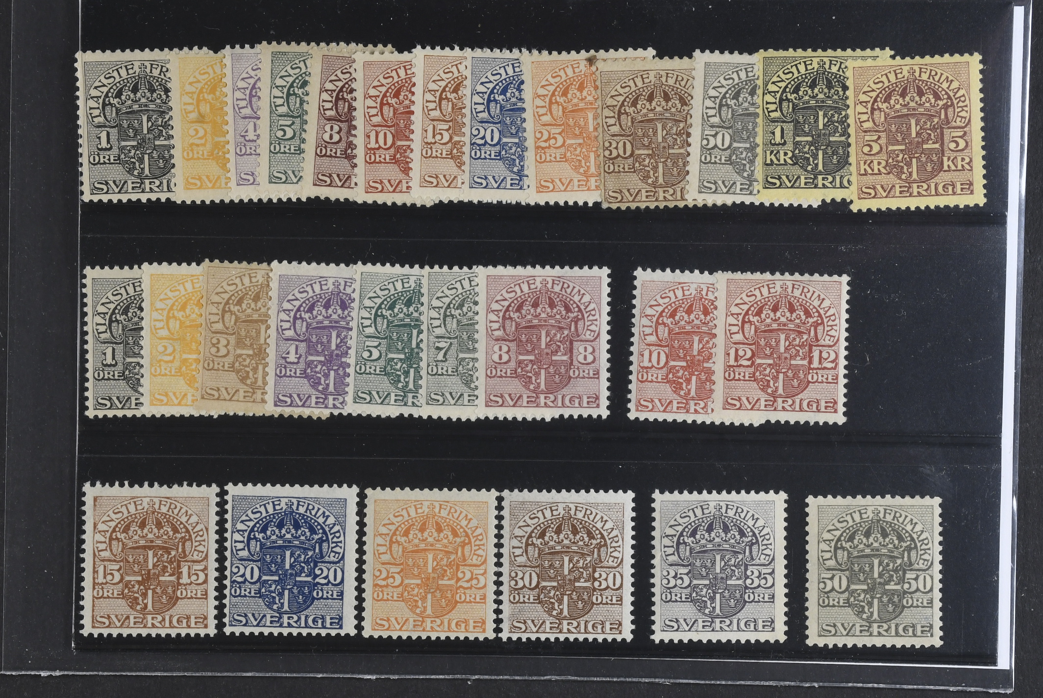 Sweden. Official Facit Tj27–54 ★★, SET watermark crown (13) and lines (15). SEK 1900