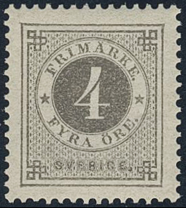 Sweden. Facit 42 ★★, 4 öre grey. Superb.