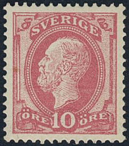 Sweden. Facit 45 ★★, 1886 Oscar II with posthorn on back 10 öre red. SEK 2200