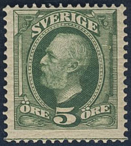 Sweden. Facit 52a2v11 ★★, 5 öre Oscar II deep green-green with joining-line. SEK 2400+