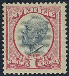Sweden. Facit 60 ★★, 1900 Oscar II 1 Kr black/red. Very fine. SEK 4400
