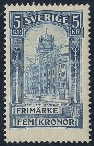 Sweden. Facit 65 ★, 1903 General Post Office 5 Kr blue (1). SEK 1900