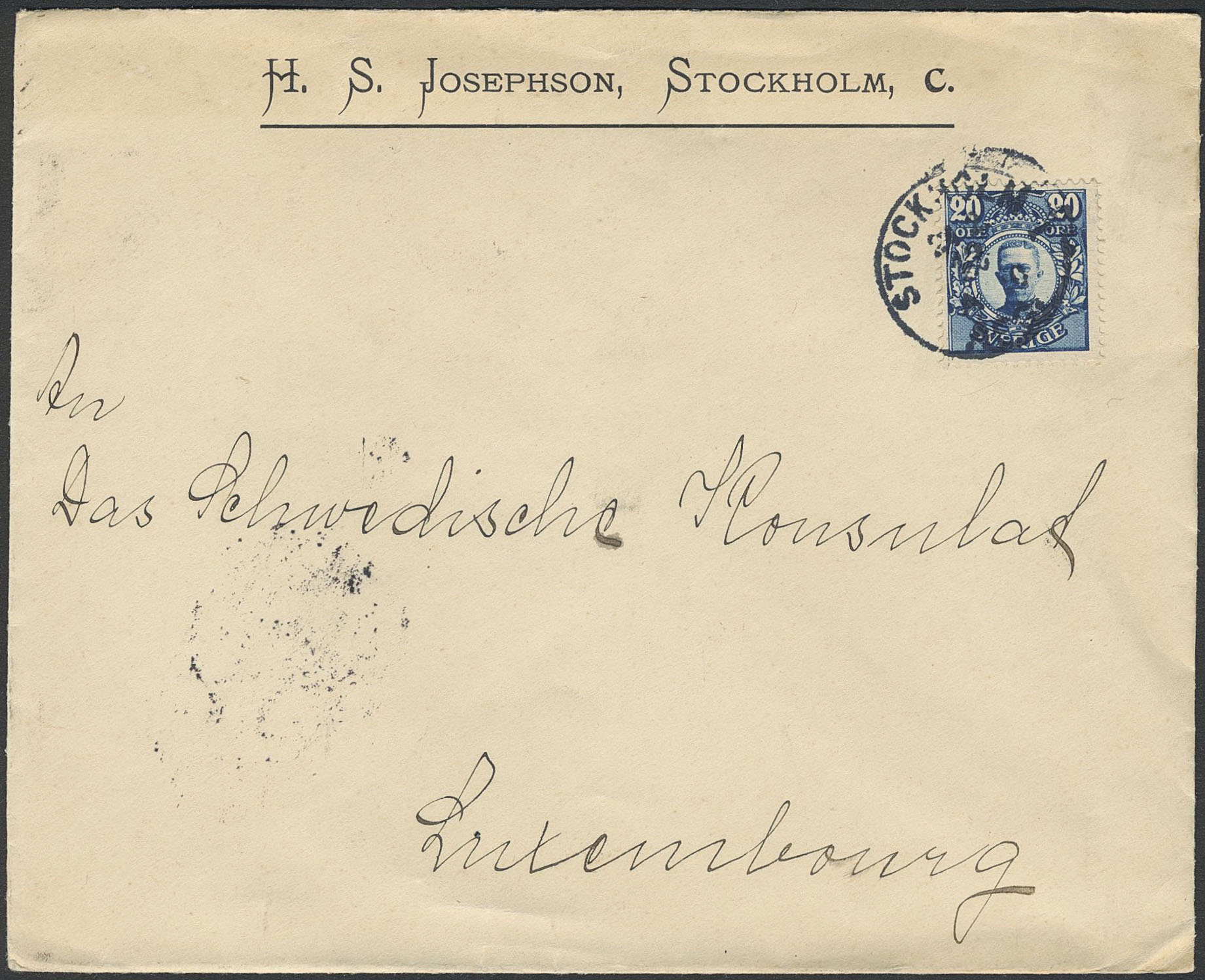 Sweden. Facit 85 on cover, 20 öre on cover sent from STOCKHOLM 24.2.12 to LUXEMBOURG 26.2.12.