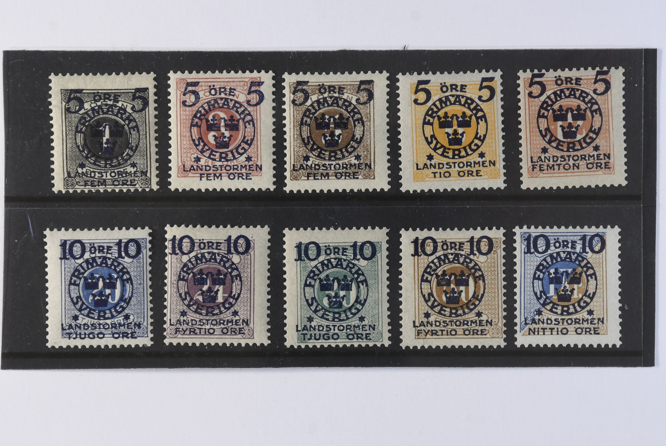 Sweden. Facit 115–24 ★★, 1916 Landstorm II. 1 öre to 1 kr. SEK 7100