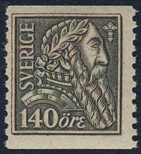 Sweden. Facit 155bBz ★★, 1921 Gustaf Vasa 140 öre olivish grey-black vertical perf 9¾ with wmk KPV. SEK 1500