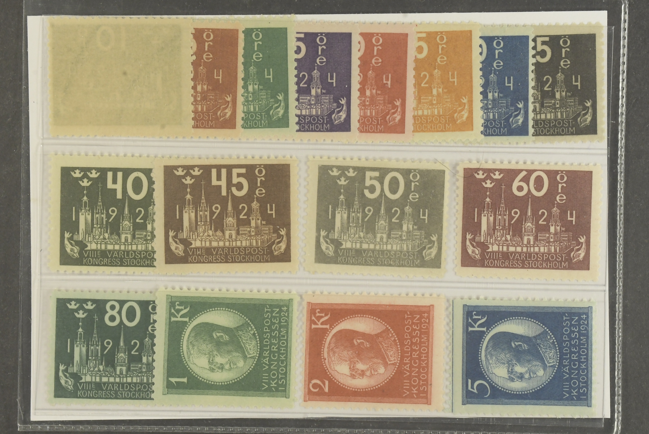 Sweden. Facit 196–210 ★★, SET including 10 öre wmk cx (16). 1 kr with one minor thin perf. SEK 12400