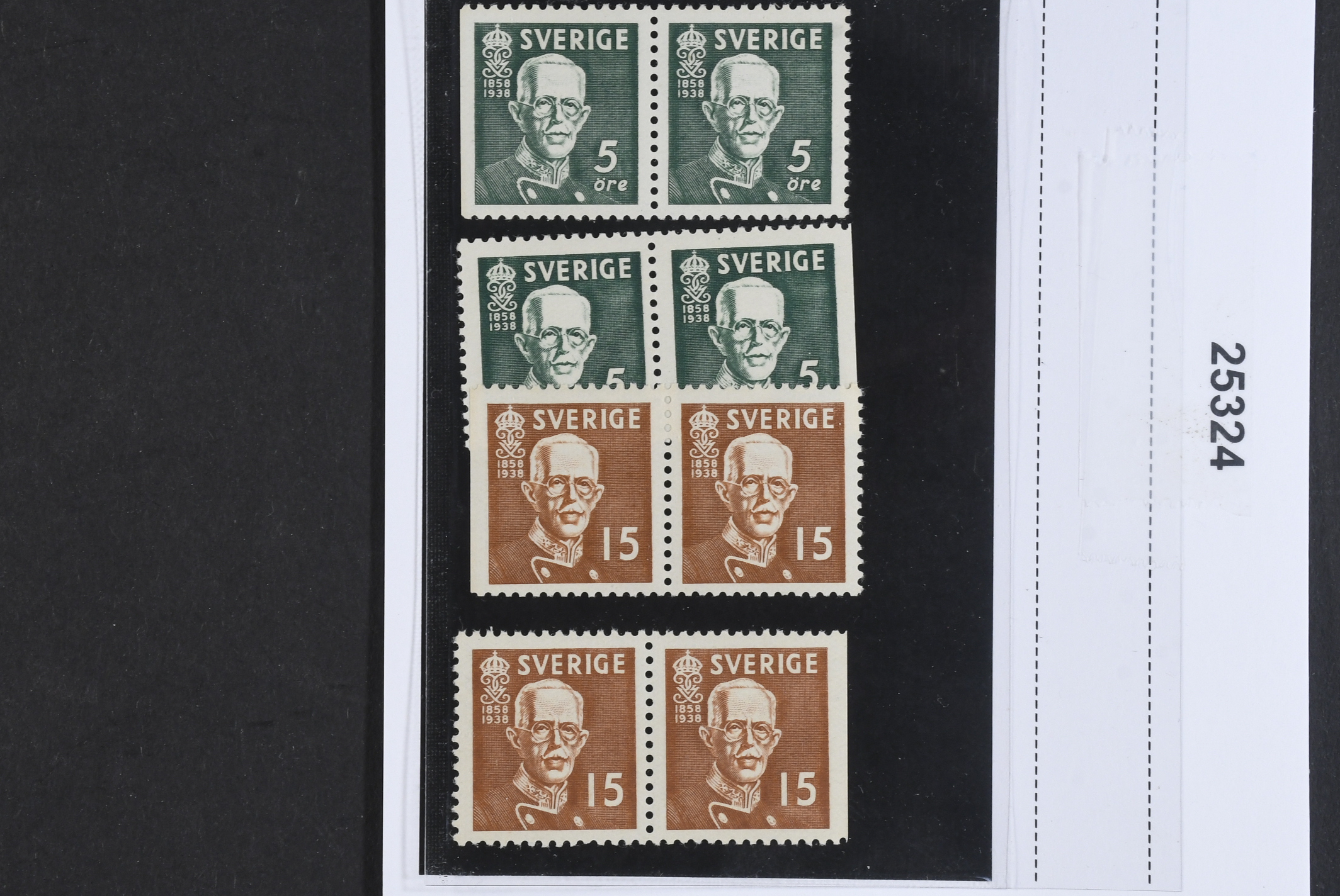 Sweden. Facit 266–67BC/CB ★★, 1938 80th Birthday of King Gustaf V 5 + 15 öre pair 3+4 and 4+3 (4). Wide margins. SEK 2300