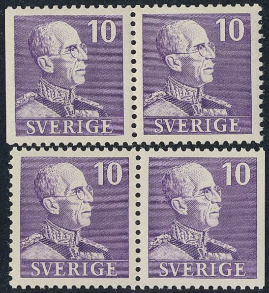 Sweden. Facit 269BC/CB ★★, 1939 Gustaf V small numerals 10 öre pair 3+4 and 4+3. Wide margins. SEK 2200