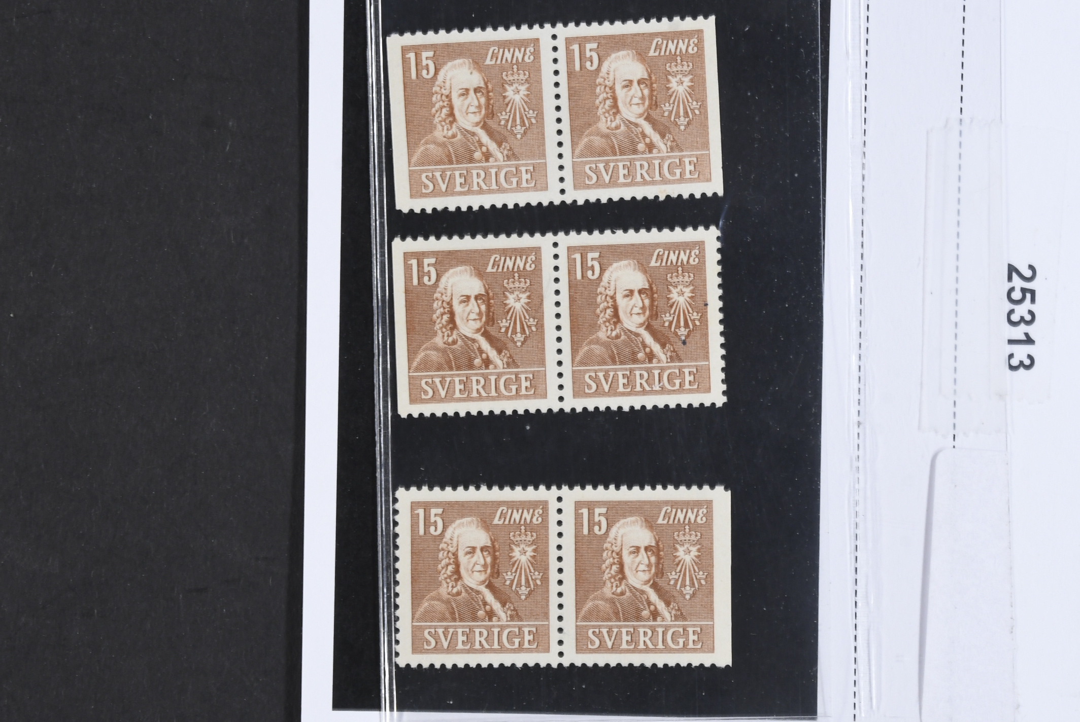 Sweden. Facit 321BC/CB/BB ★★, 1939 Royal Academy of Sciences 15 öre brown, pair 3+4 and 4+3 and 3+3. SEK 3820