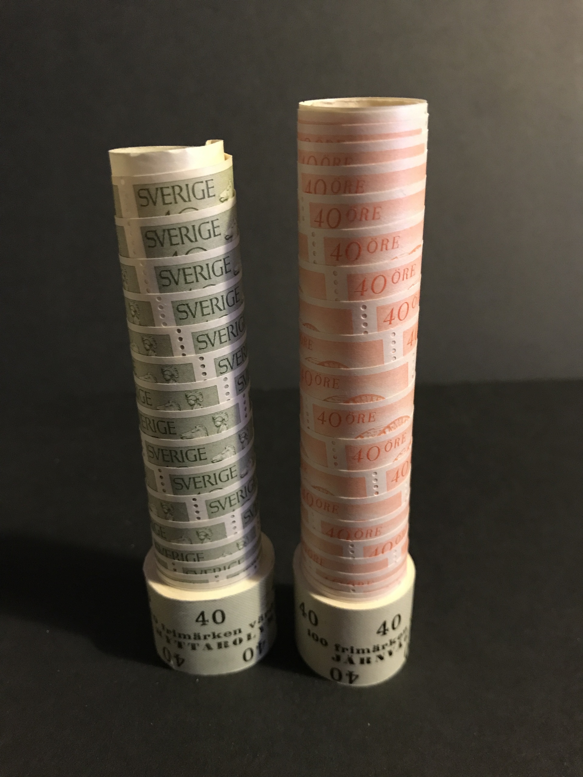 Sweden. Facit 480, 485 ★★, 1956 Equestrian Olympics 40 öre green and SJ 40 öre orange in cpl coils with 100 stamps in each. SEK 8000