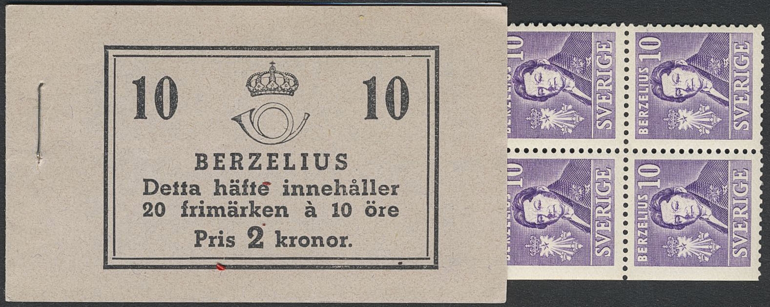 Sweden. Booklet Facit H40BC, 1939 Royal Academy of Sciences 20 × 10 öre violet, perf on three and four sides. SEK 17000