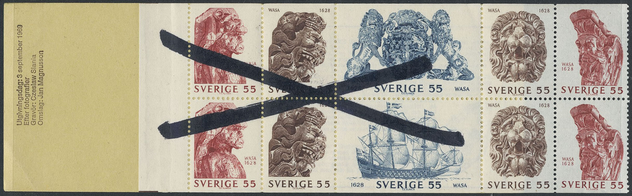 Sweden. Booklet Facit H225B, 1969 Man-of-war Vasa SET glossy gum. Booklet cross-marked by the post office (marker missing from perforation holes).