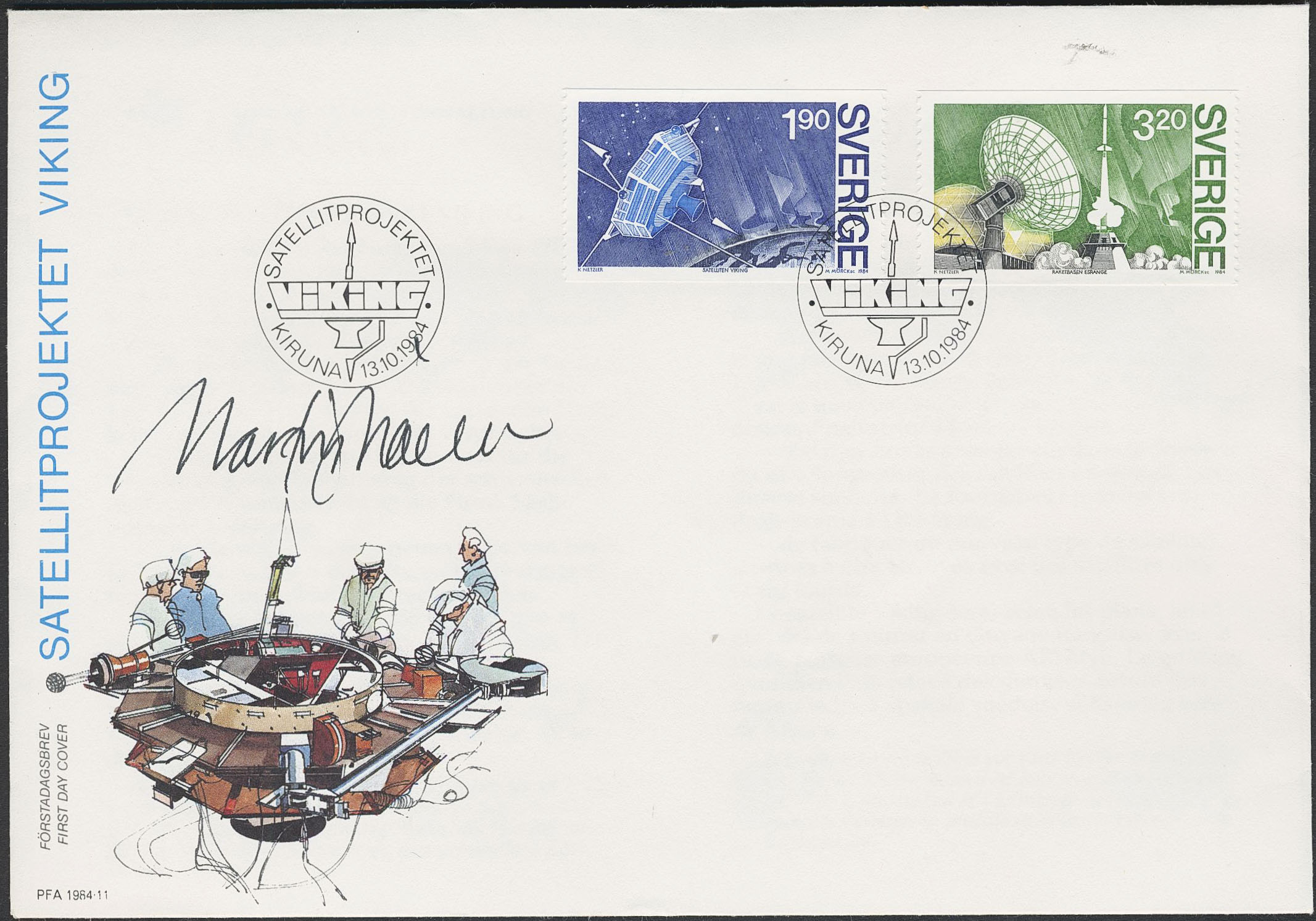 Sweden. Facit 1322–23 on FDC, 1984 The Viking Satellite on FDC sign. MARTIN MÖRCK.