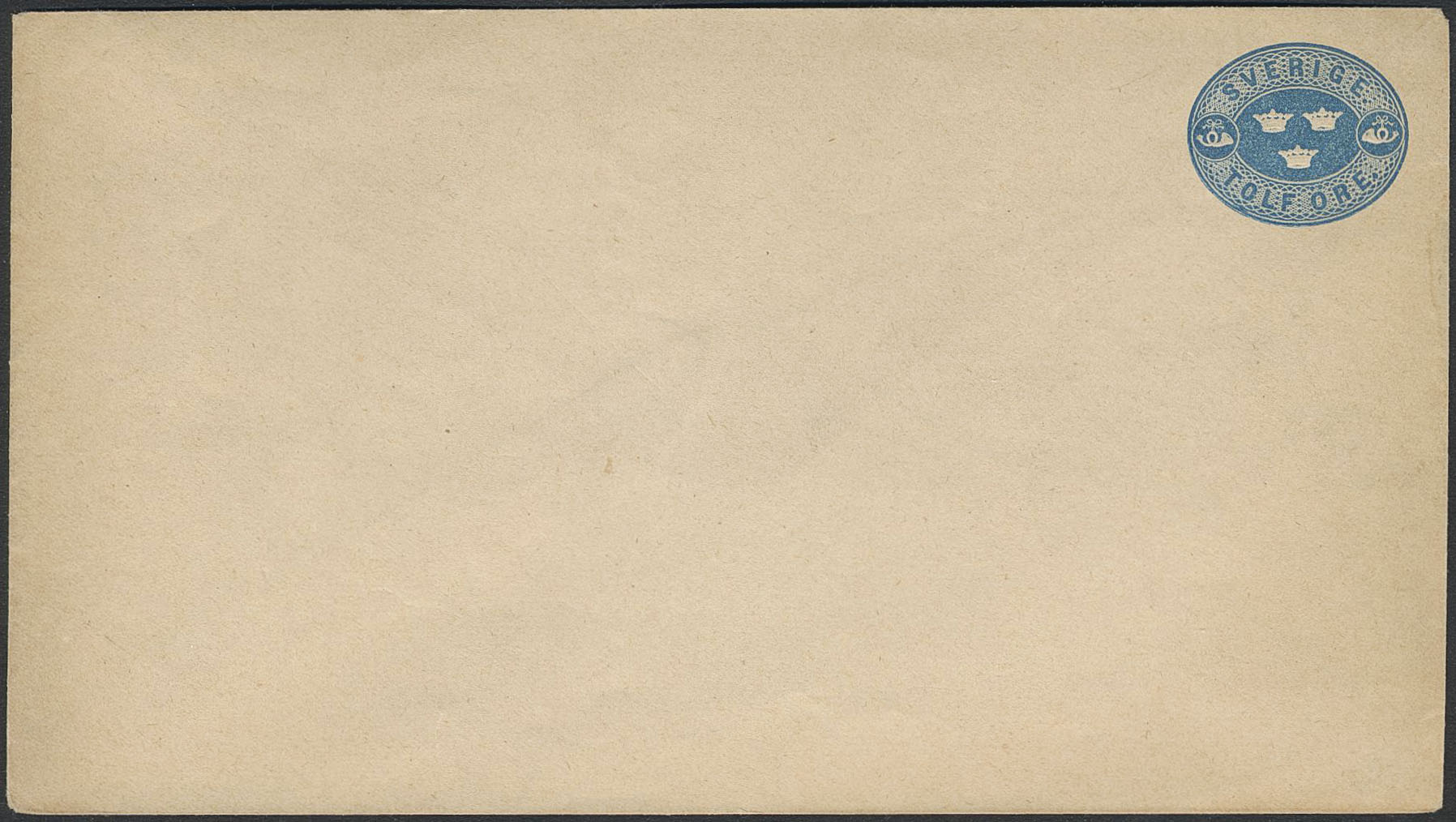 Sweden. Postal stationery, Stamped envelope, Facit Fk1IIa, Stamped envelope 12 öre type II dark blue, unused.