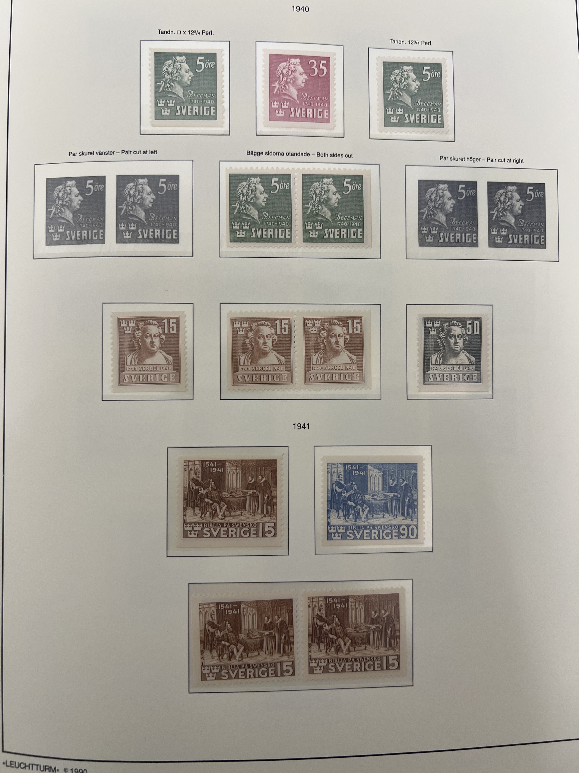 Sweden. Sweden **/* collection 1889-2006 in two Leuchtturm albums with stamp mounts and Casette. 2002–2006 on Leuchtturm leaves. Fine quality (1000s). Sparcely filled upp to 1943, after that, more are filled. In the 1990s–2000s it seems to be almost complete. A lot of good face value in the later years, including 'Sverige BREV'.