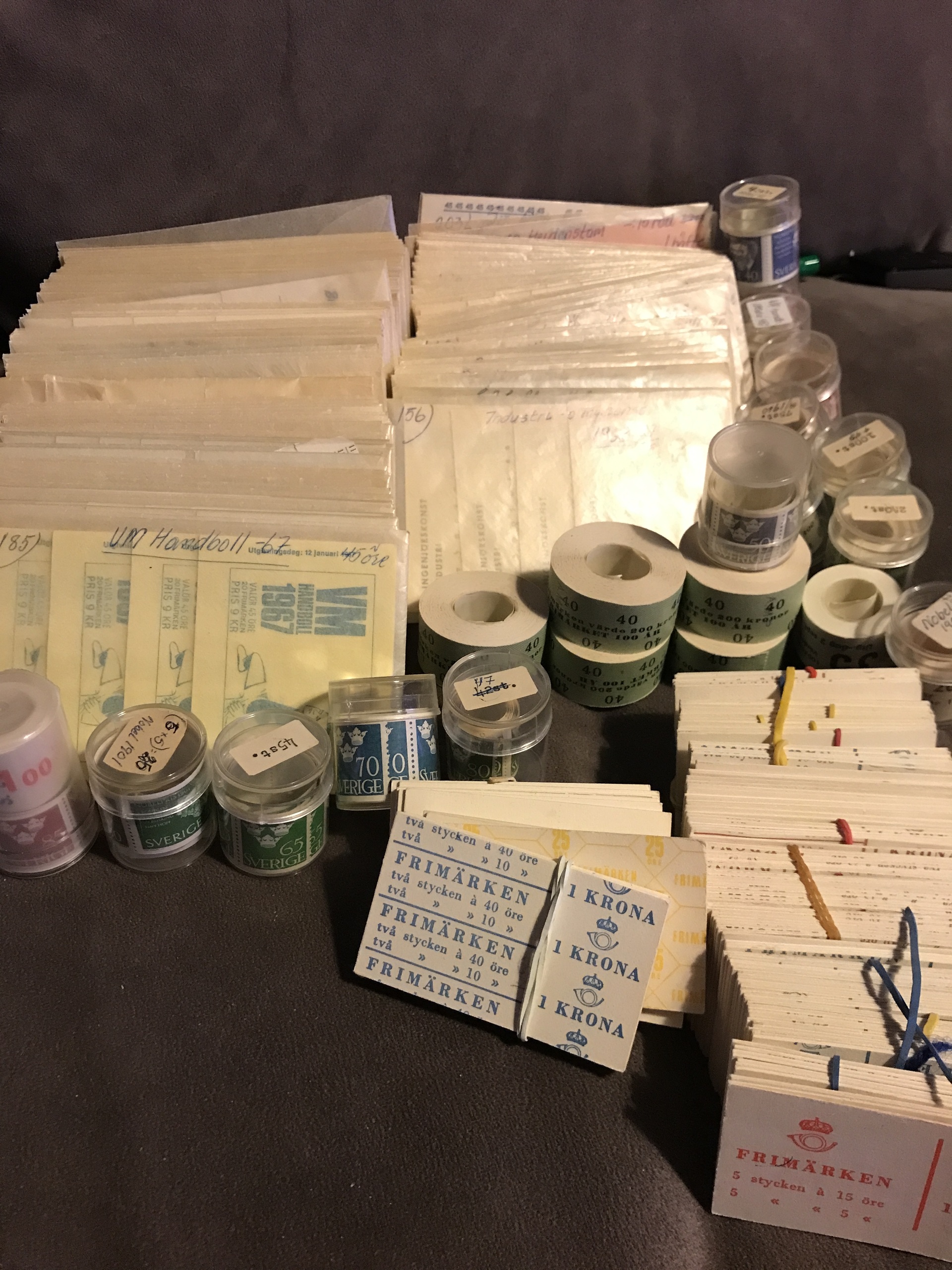 Sweden. ★★. Box with 100s of booklets and stamps mainly 1950s–1960s incl. e.g. about 2800 stamps F468 in coils, five HA6, etc.