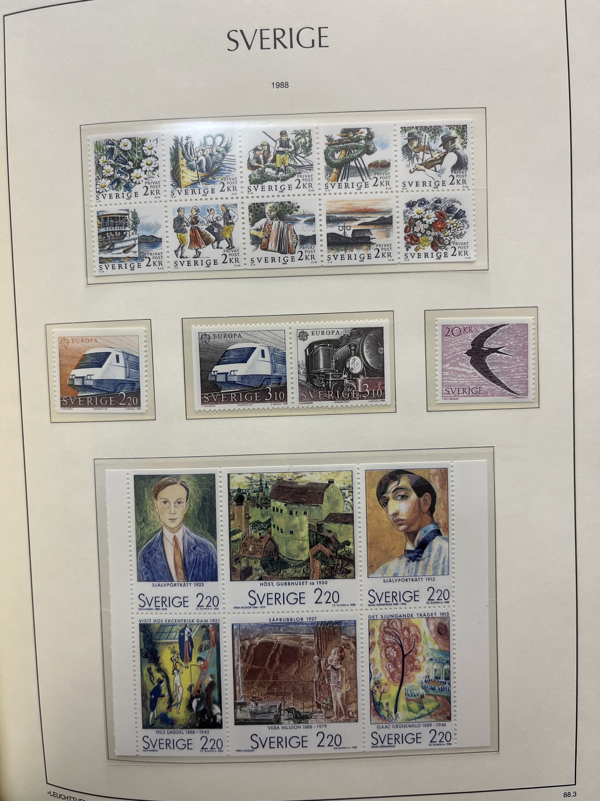 Sweden. Sweden ** collection ca. 1965–1992 in three Leuchtturm albums with stamp mounts (leaves from 1855), stamps, sets and some booklets