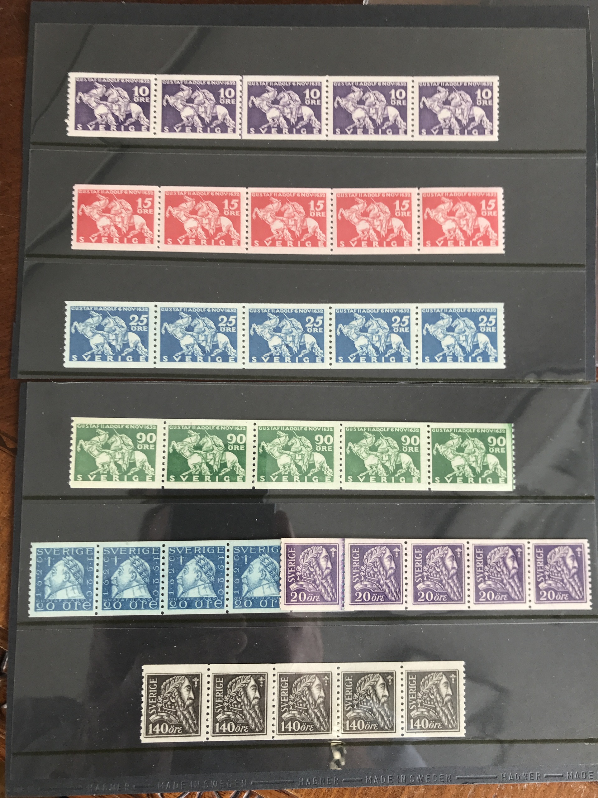Sweden. ★★. Seven very fine stripes-of five incl. 152Abz, 153, 155 and 234-37. F ca 8900.