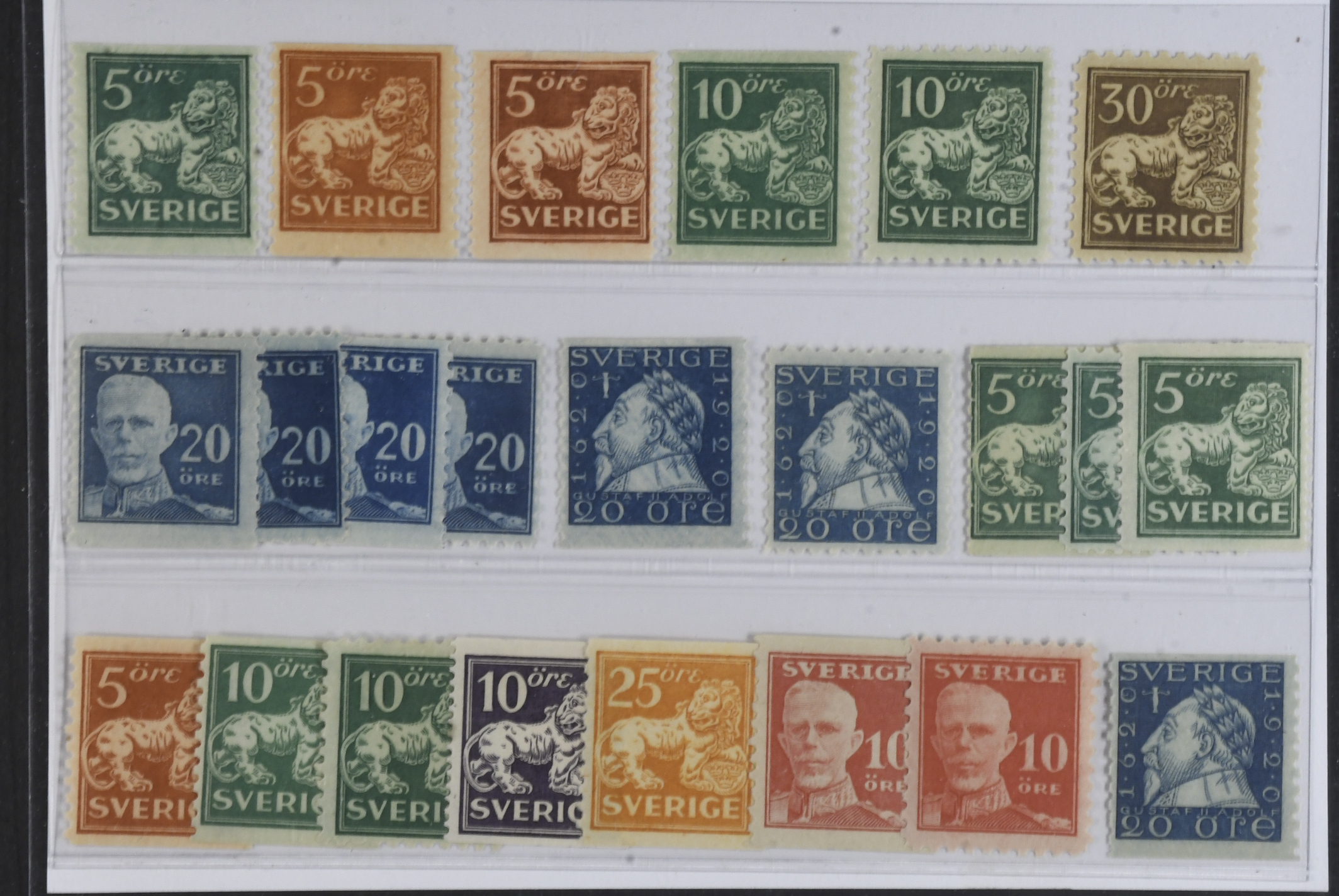 Sweden. ★ 1920–1934. All different, e.g. F 140Acx, 141, 142Ecc, 144Abz+Ccx, 148C, 151A+C, 151Abz+Cbz, 152Acx+Abz. Mostly good quality. F SEK 6035 (23)
