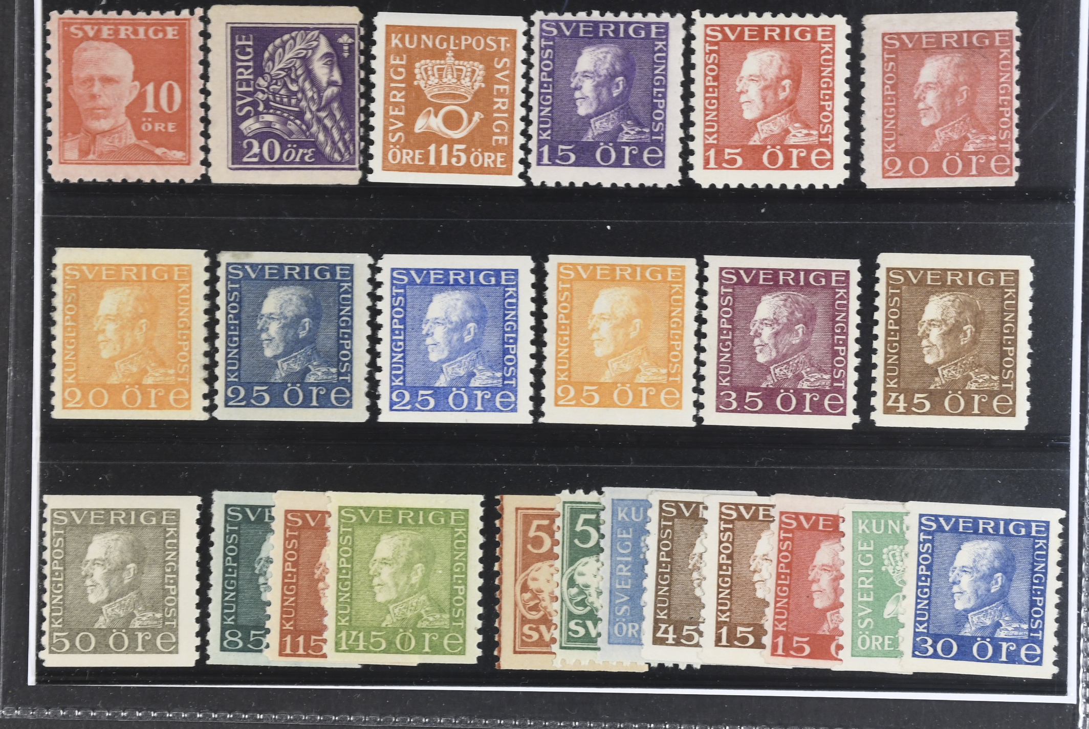 Sweden. ★★ 1920–36. All different, e.g. F 149C, 153, 170A3, 175C, 177C, 180a, 181a, 183a+A3, 184, 187A3, 191a, 192b, 193–95. Mostly good quality. F SEK 9490 (24)