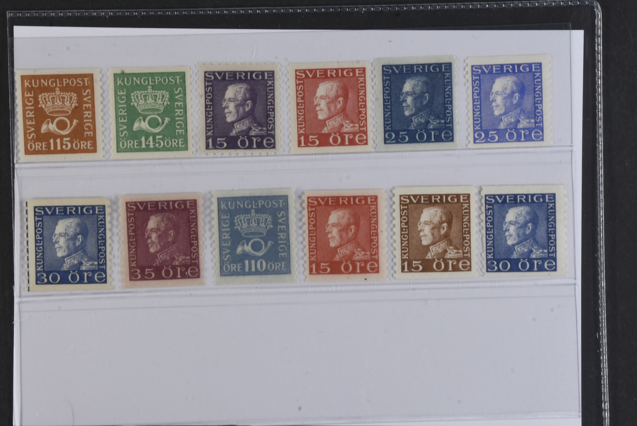 Sweden. ★★ 1920–1934. All different, e.g. Coil stamps F 170A3, 174A3, 175C, 177A3, 183a+A3, 185a, 187a. Mostly good quality. F 5590 (12)