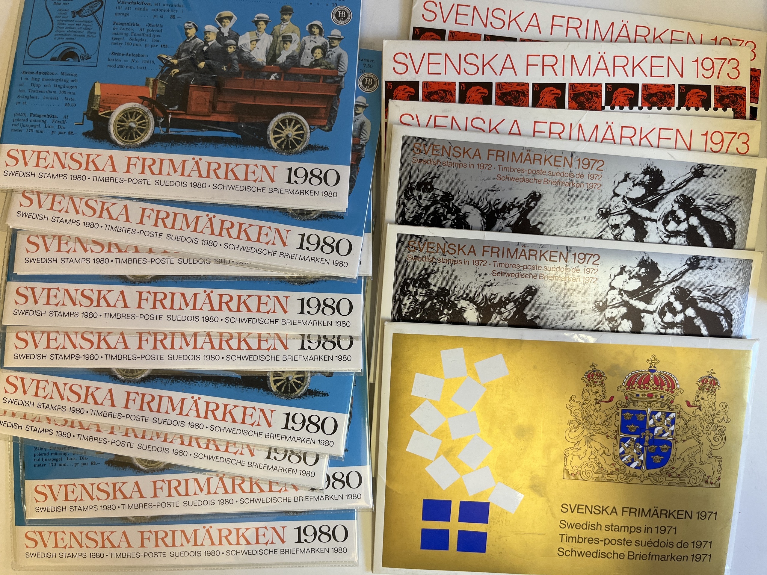 Sweden. Accumulation ★★ in box with e.g. boklets and year sets 1971 (opened), 1972 (2), 1973 (3 (one opened)), 1980 (10).