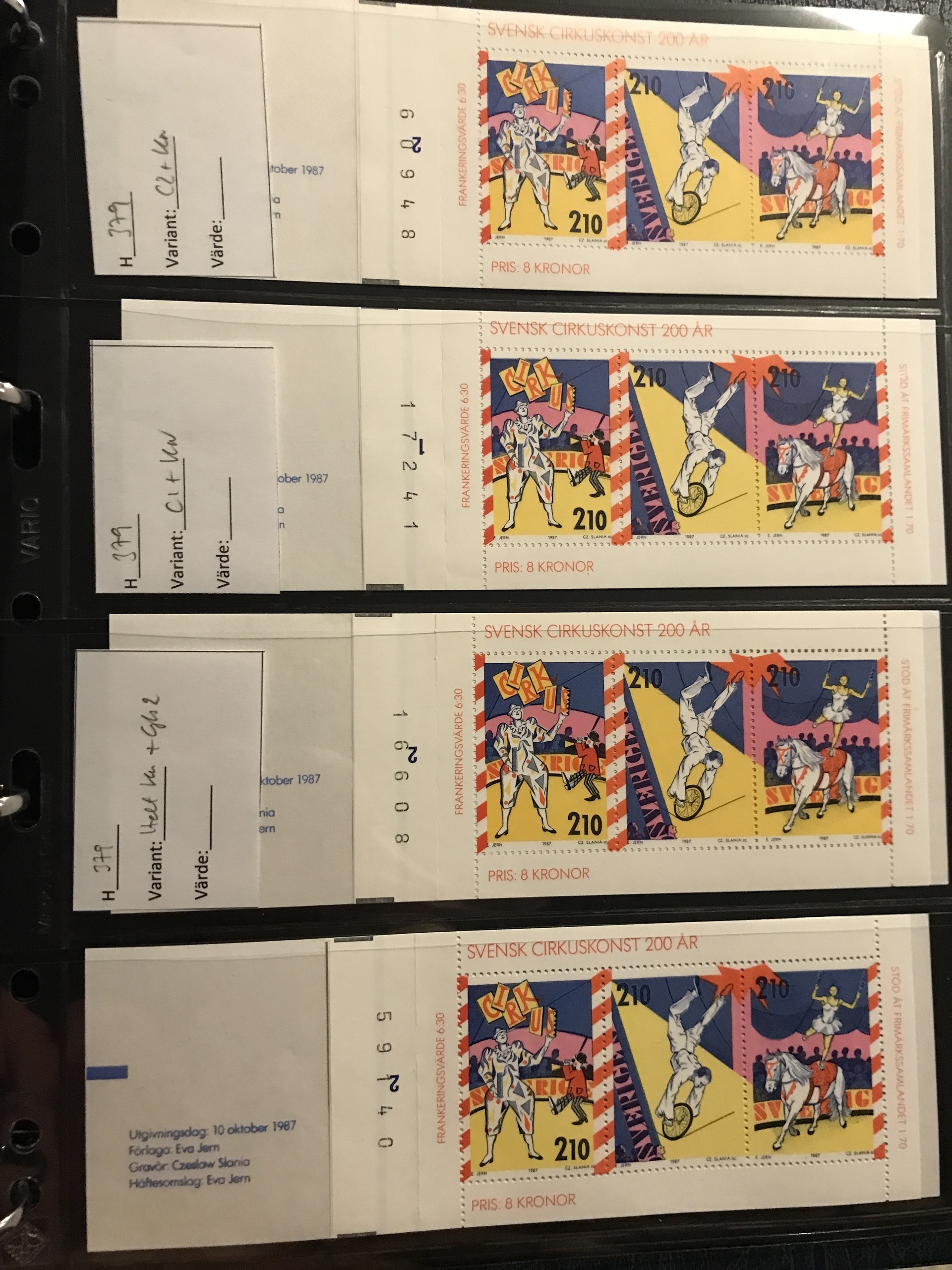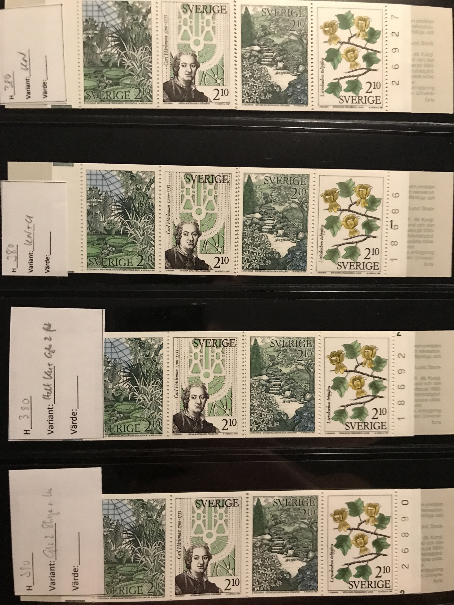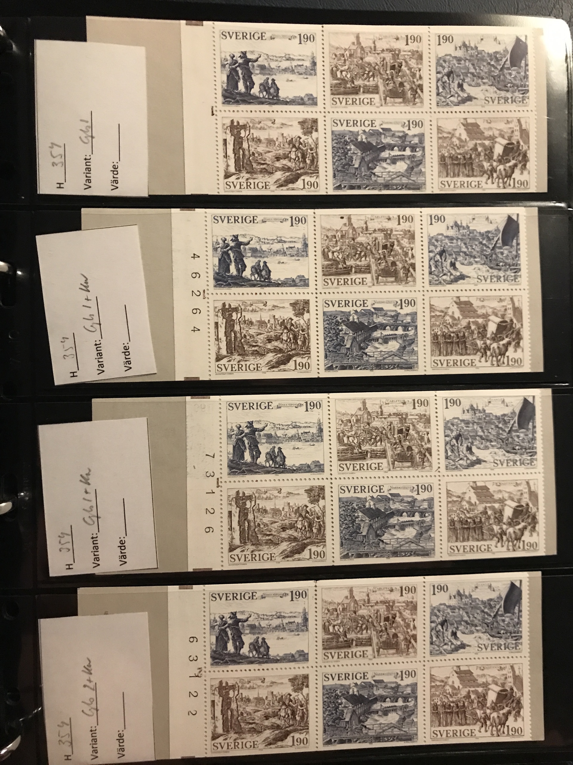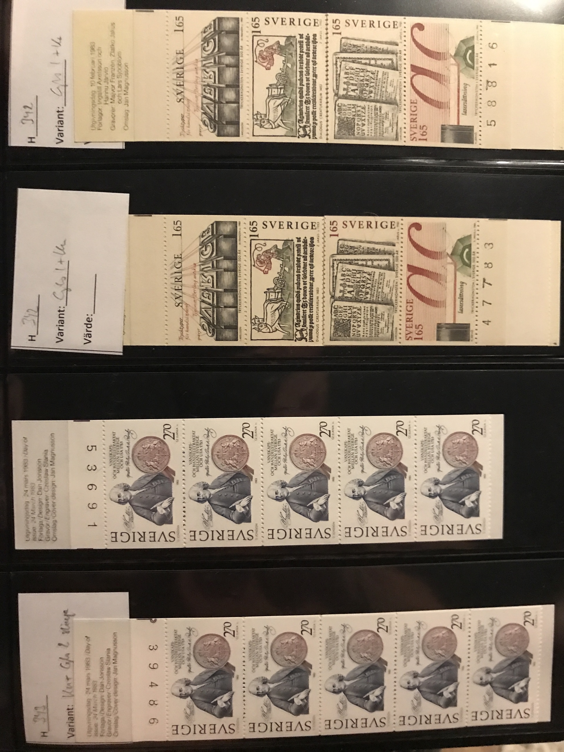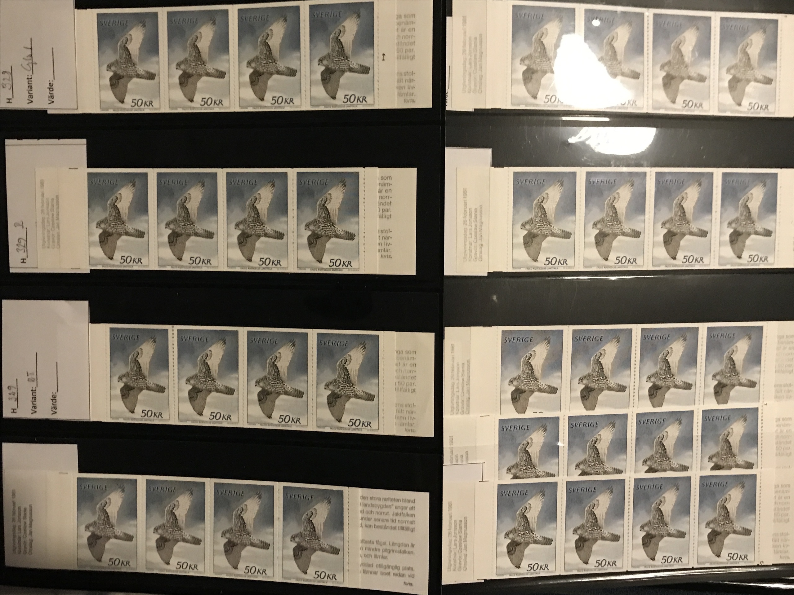 Sweden. Face value. Booklet collection 1979–1988 in five Leuchtturm binders with slip cases incl. several with margin digits and RT, nine 'Jaktfalk', etc. Face value approx. 14900. Please see a selection of scans at www.philea.se. Approx. 14 kg.