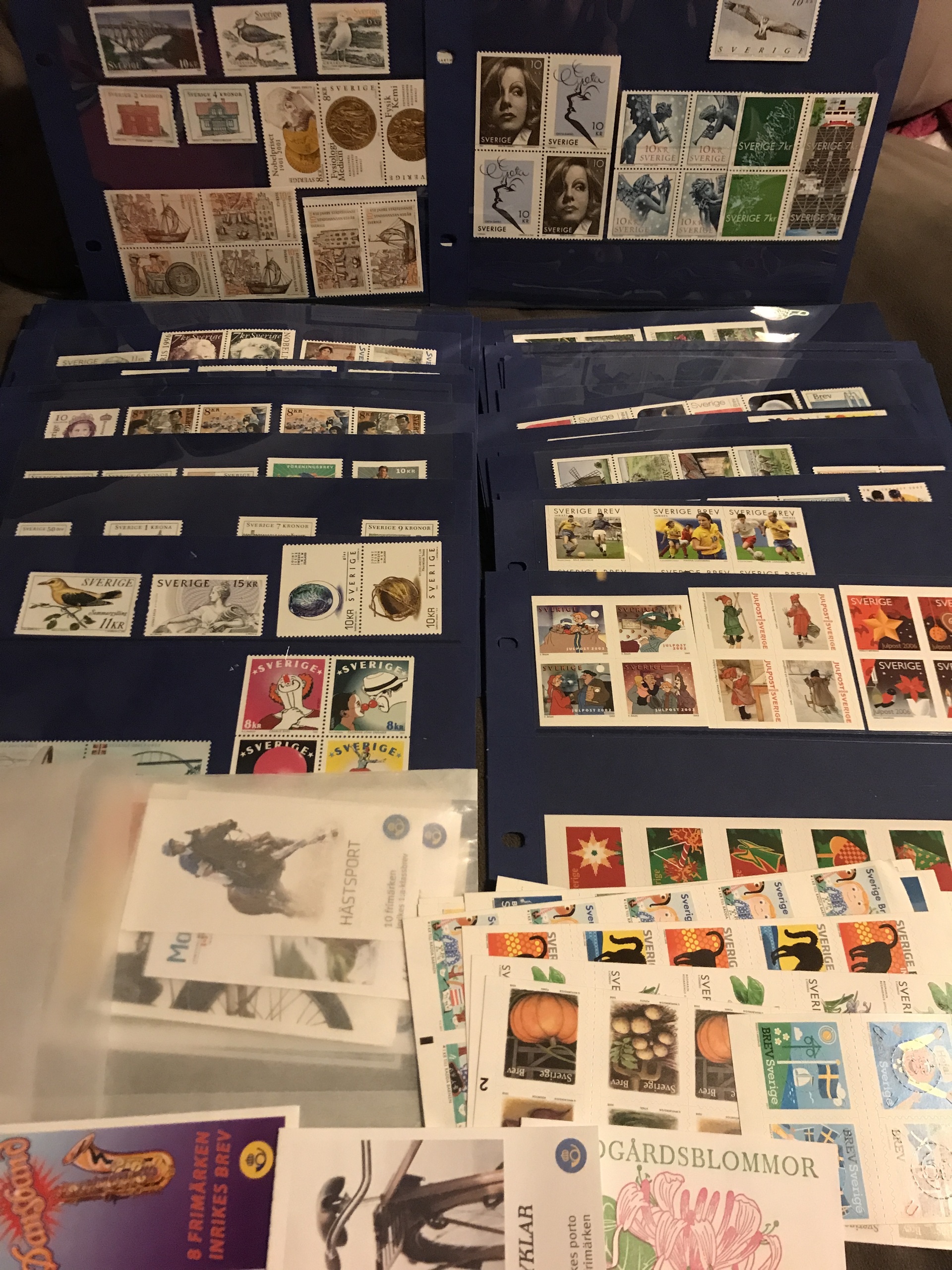 Sweden. Face value. Stamps and booklets 1990s–2000s. Face value >2300 + 432 'Sverige BREV' and 66 Christmas stamps.