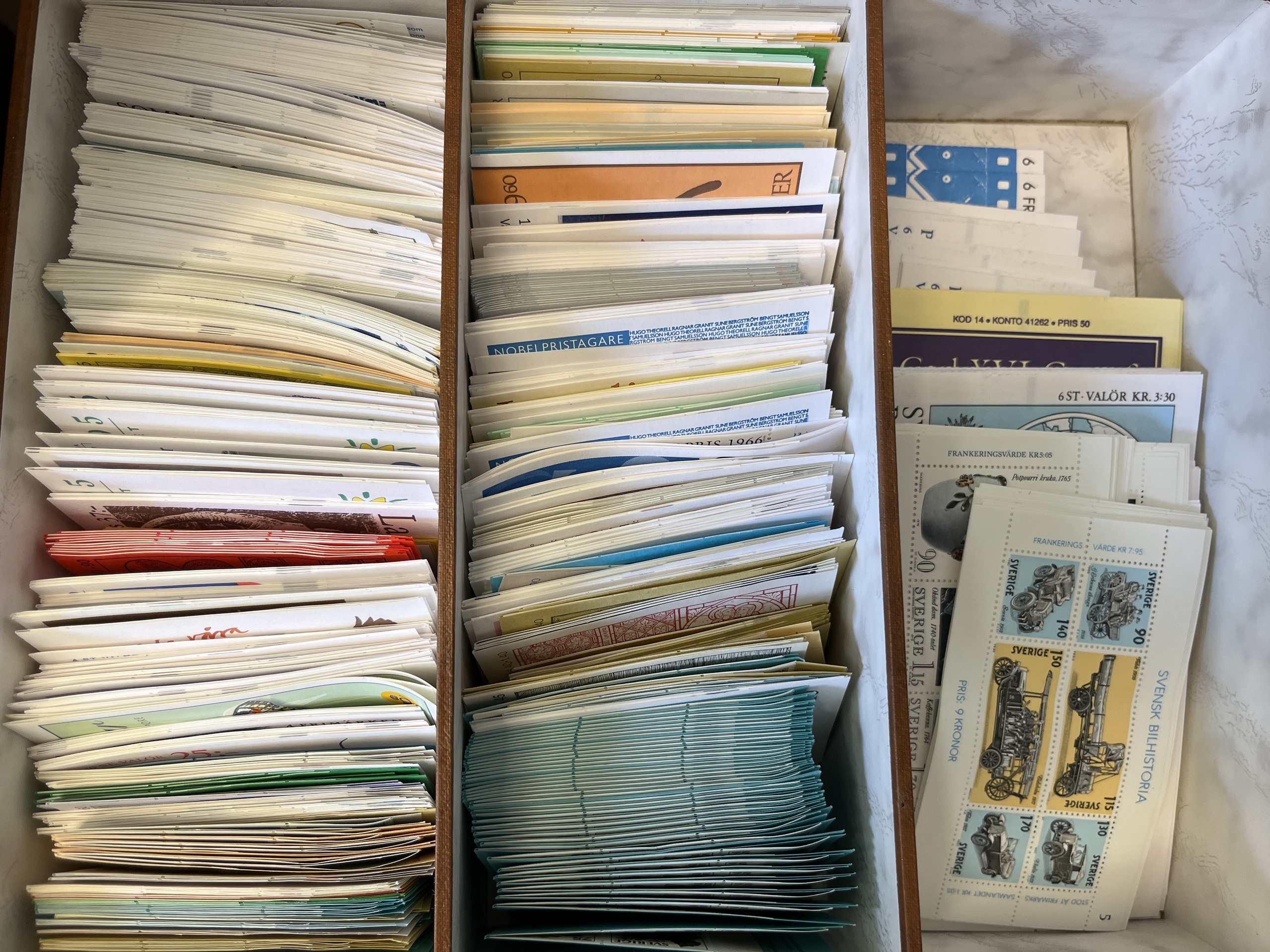 Sweden. Face value, accumulation in box. Booklets and some blocks with face value ca. 16000.