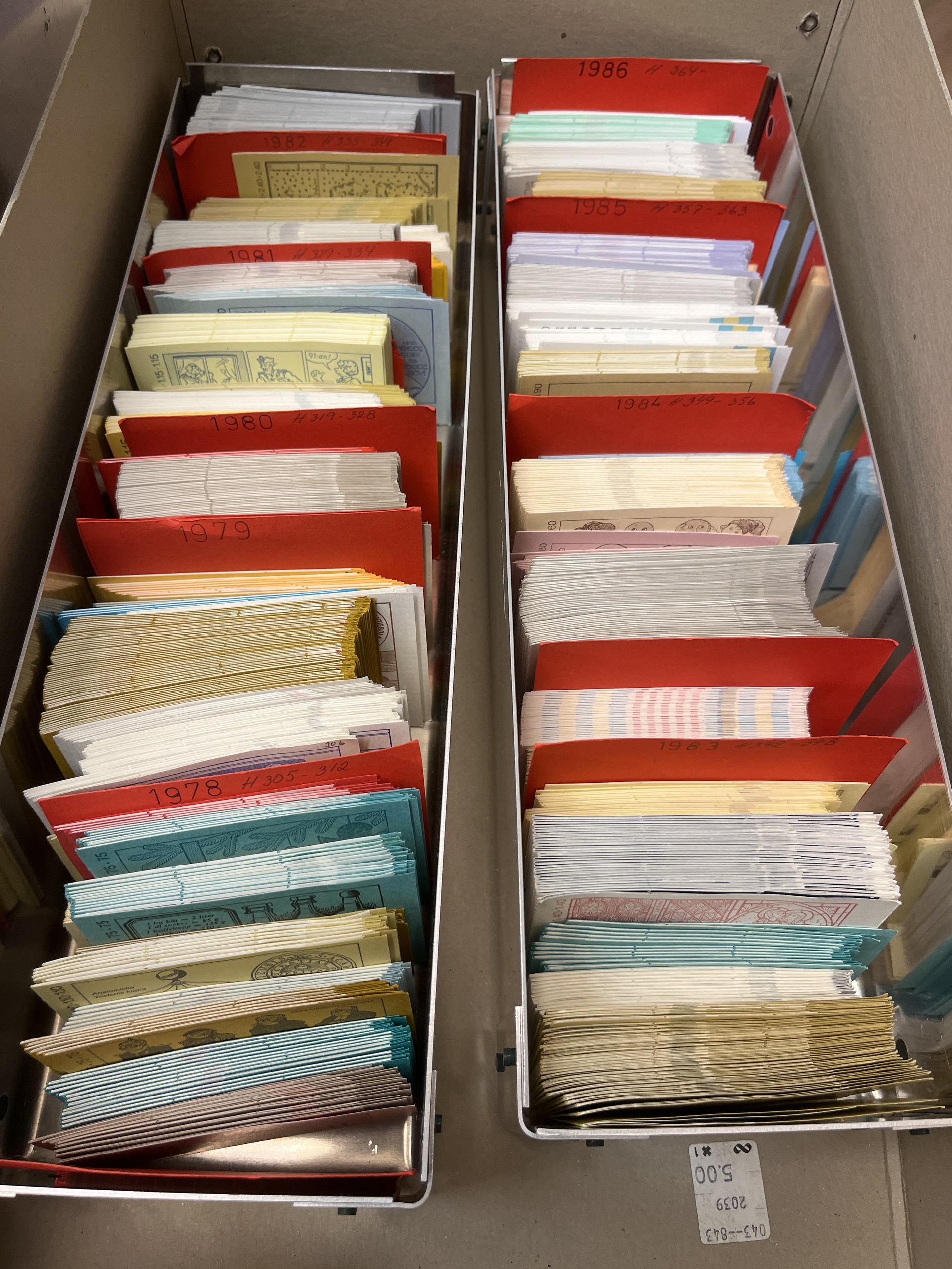 Sweden. Face value, accumulation 1977–1986 in box. Booklets with face value over 15000.