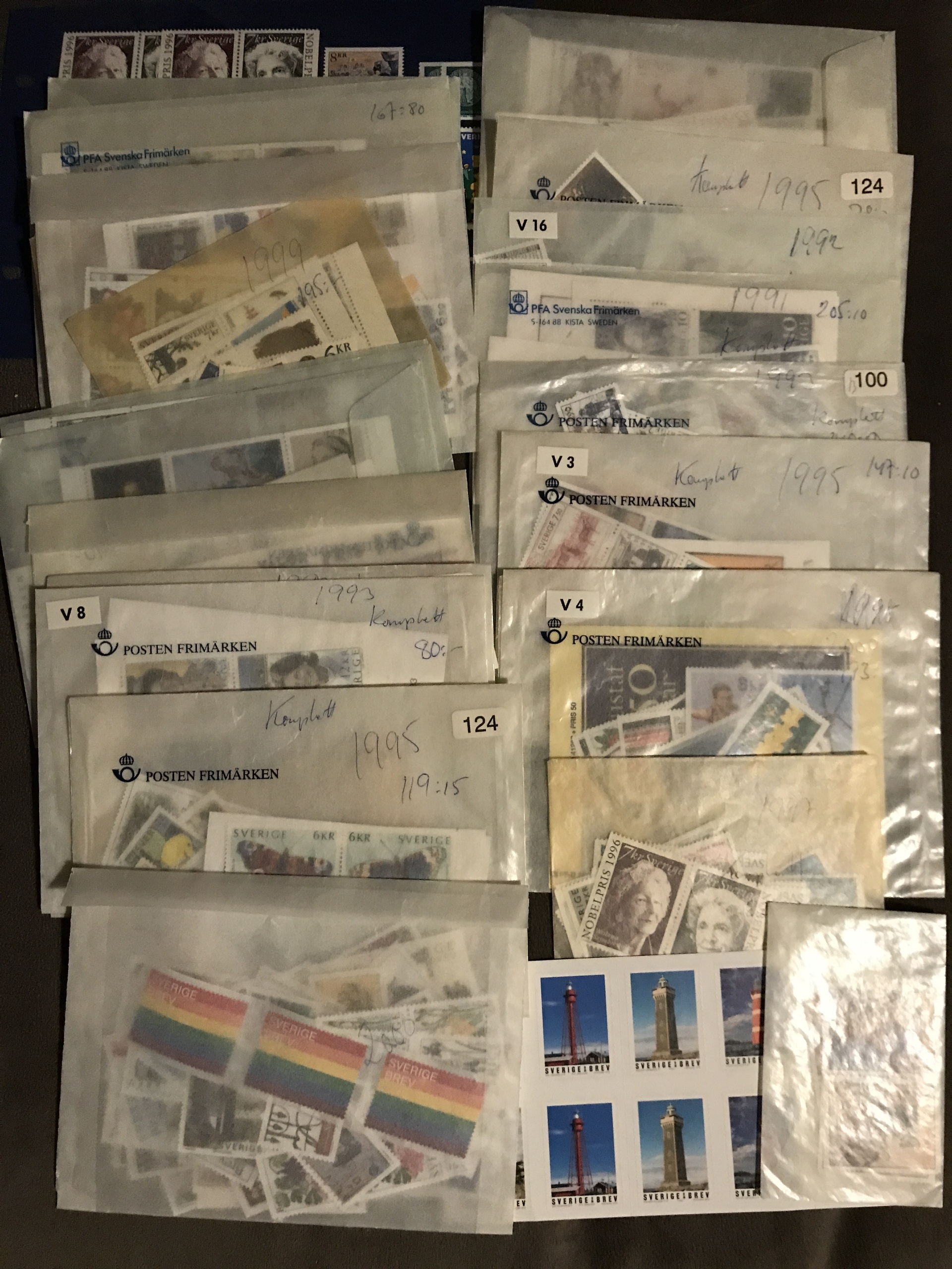 Sweden. Face value. Stamps and booklets mostly 1988–2000. Face value ca. 3400 + 163 'Sverige BREV' and 14 Christmas stamps.