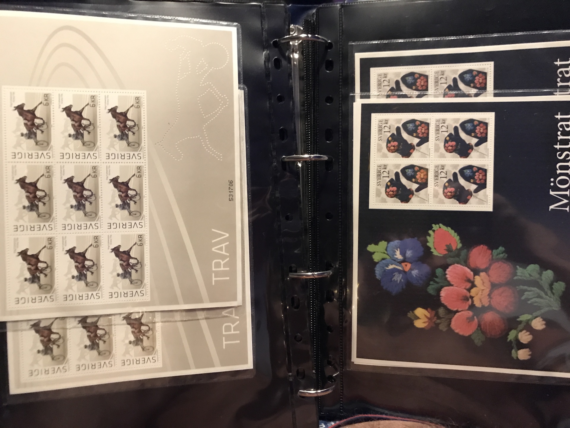 Sweden. Face value. Binder with 64 souvenir sheets 2004–2016, mainly two of each. Face value ca. 2300 + 162 'Sverige BREV'.