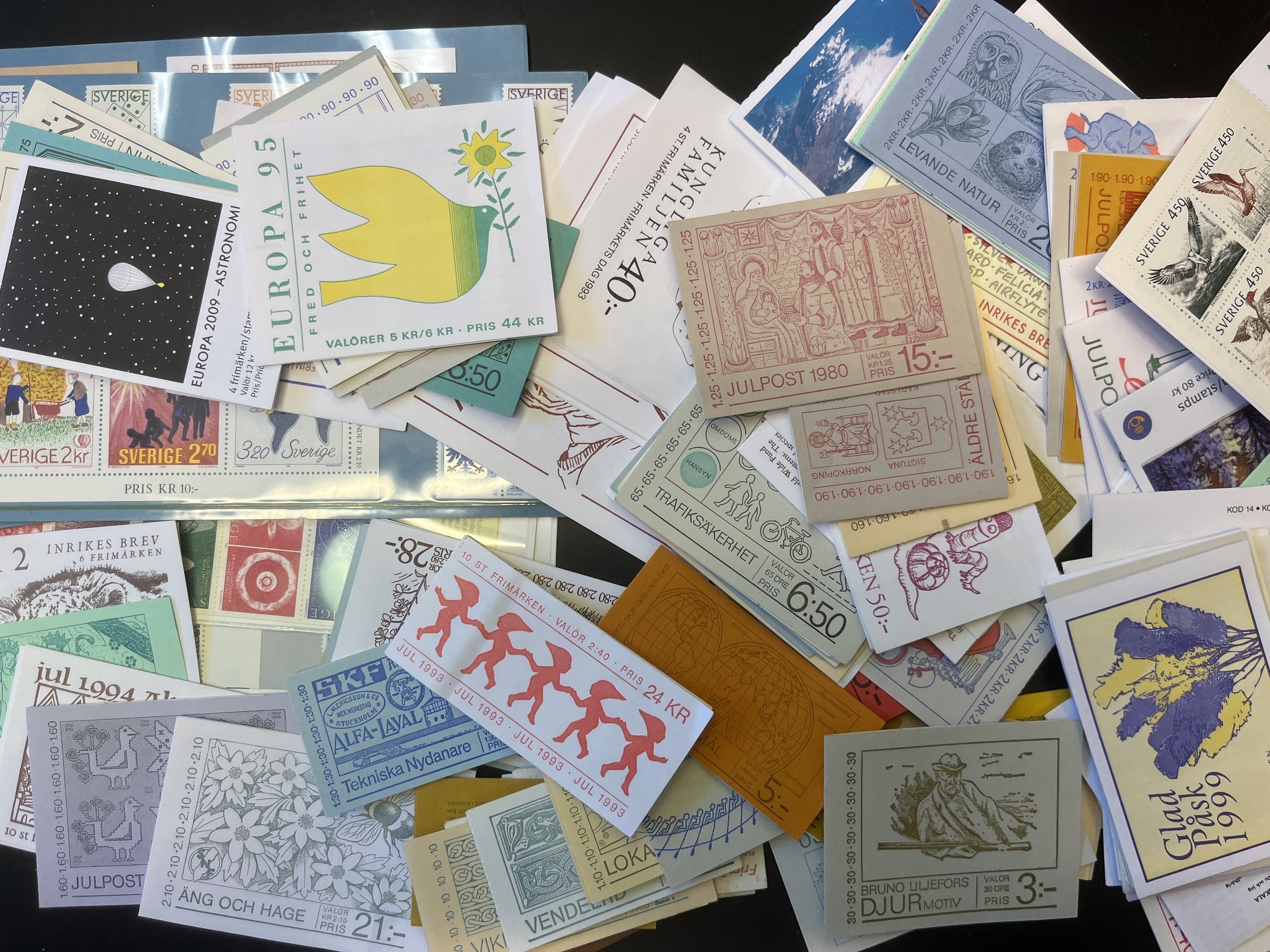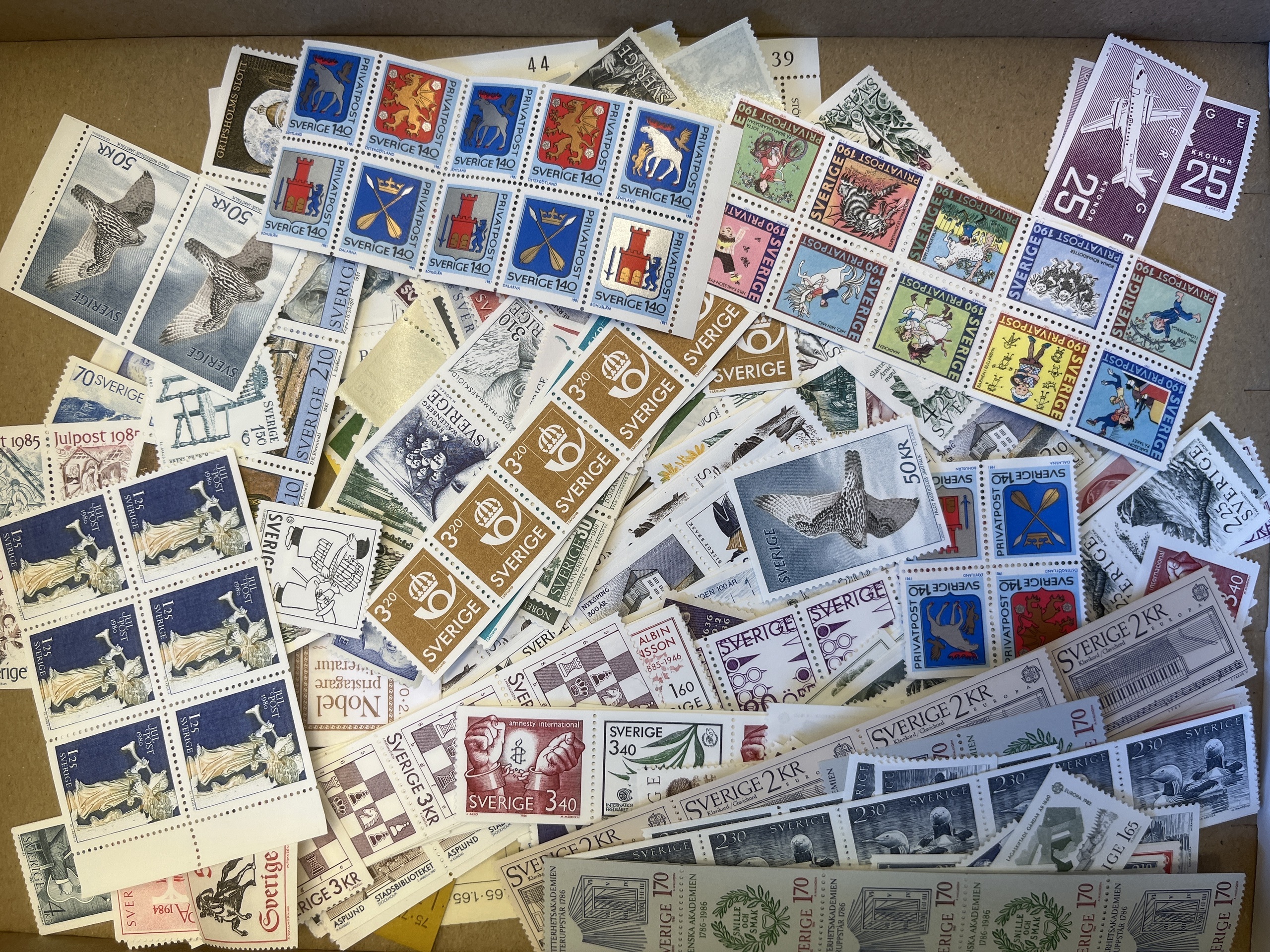 Sweden. Face value, lot in box. Booklets, not compl. booklets and unused stamps. High face value.