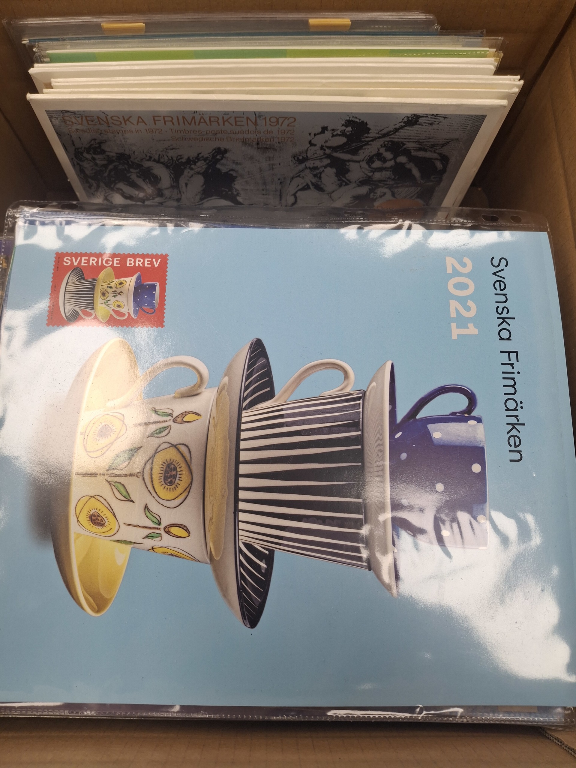 Sweden. Year sets, collection/accumulation 1972–2021 in removal box. One of each. Some older ones are opened. Face value ca. 29000. Approx. 15 kg.