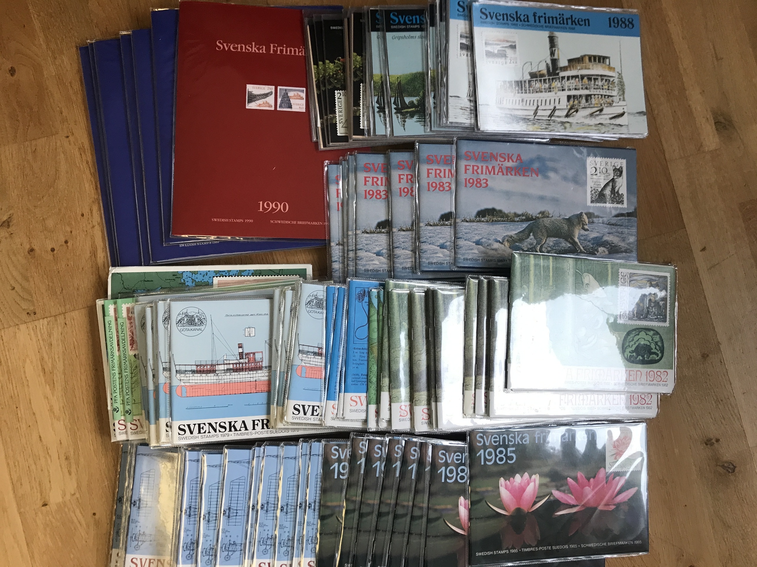 Sweden. Year sets. 93 year sets 1976–1990. Face value approx. 9000 + 356 discount stamps. Approx. 9 kg.