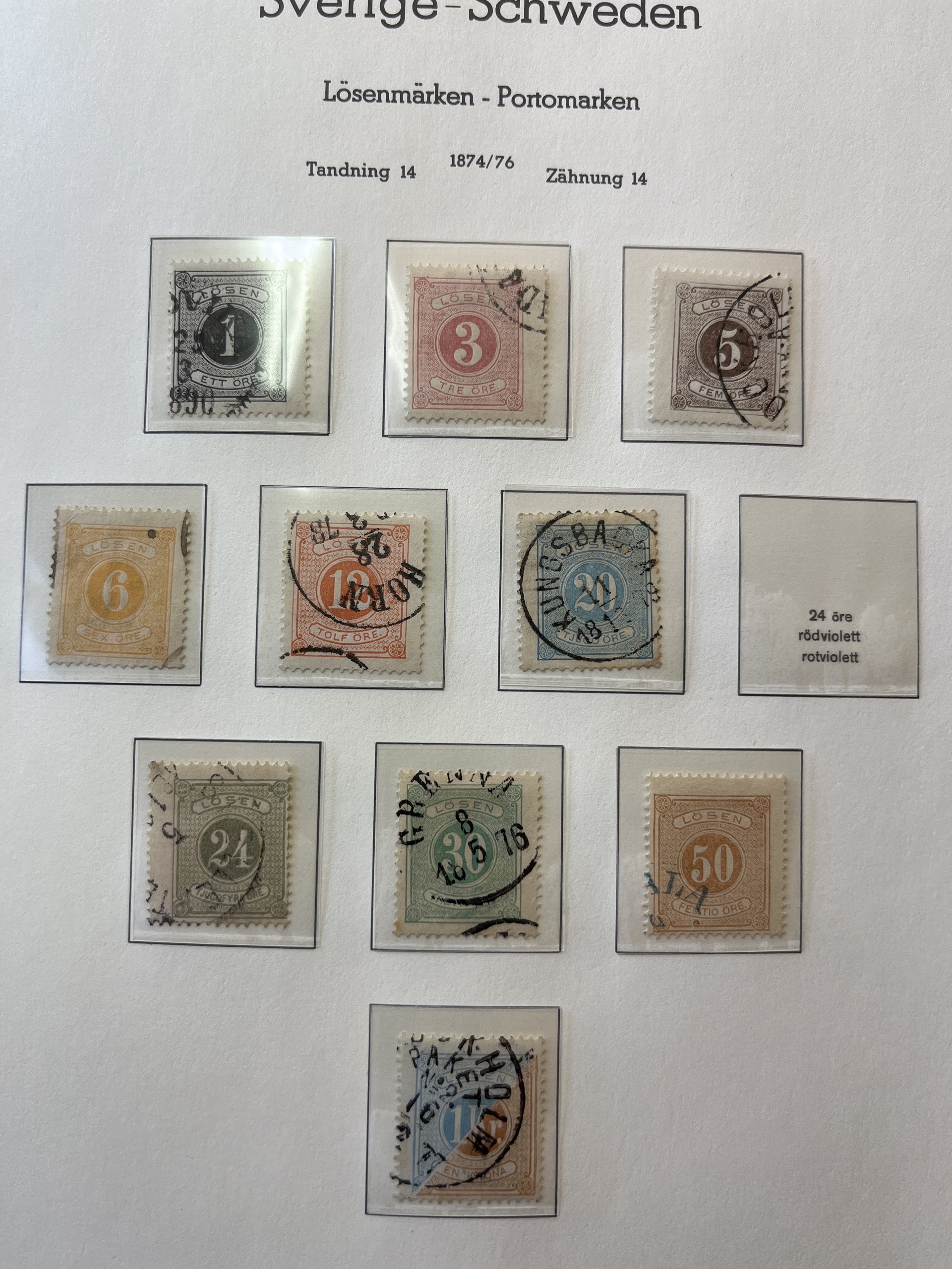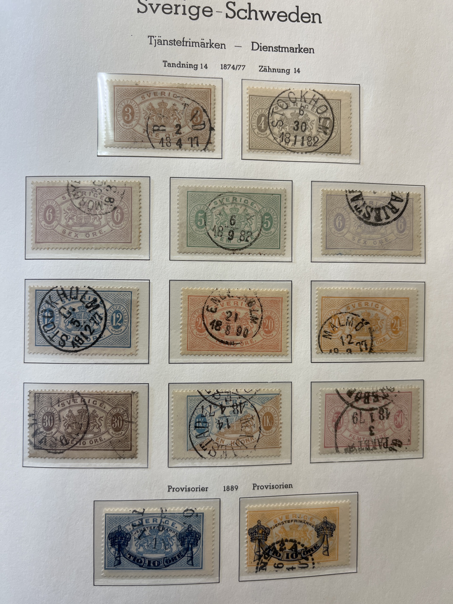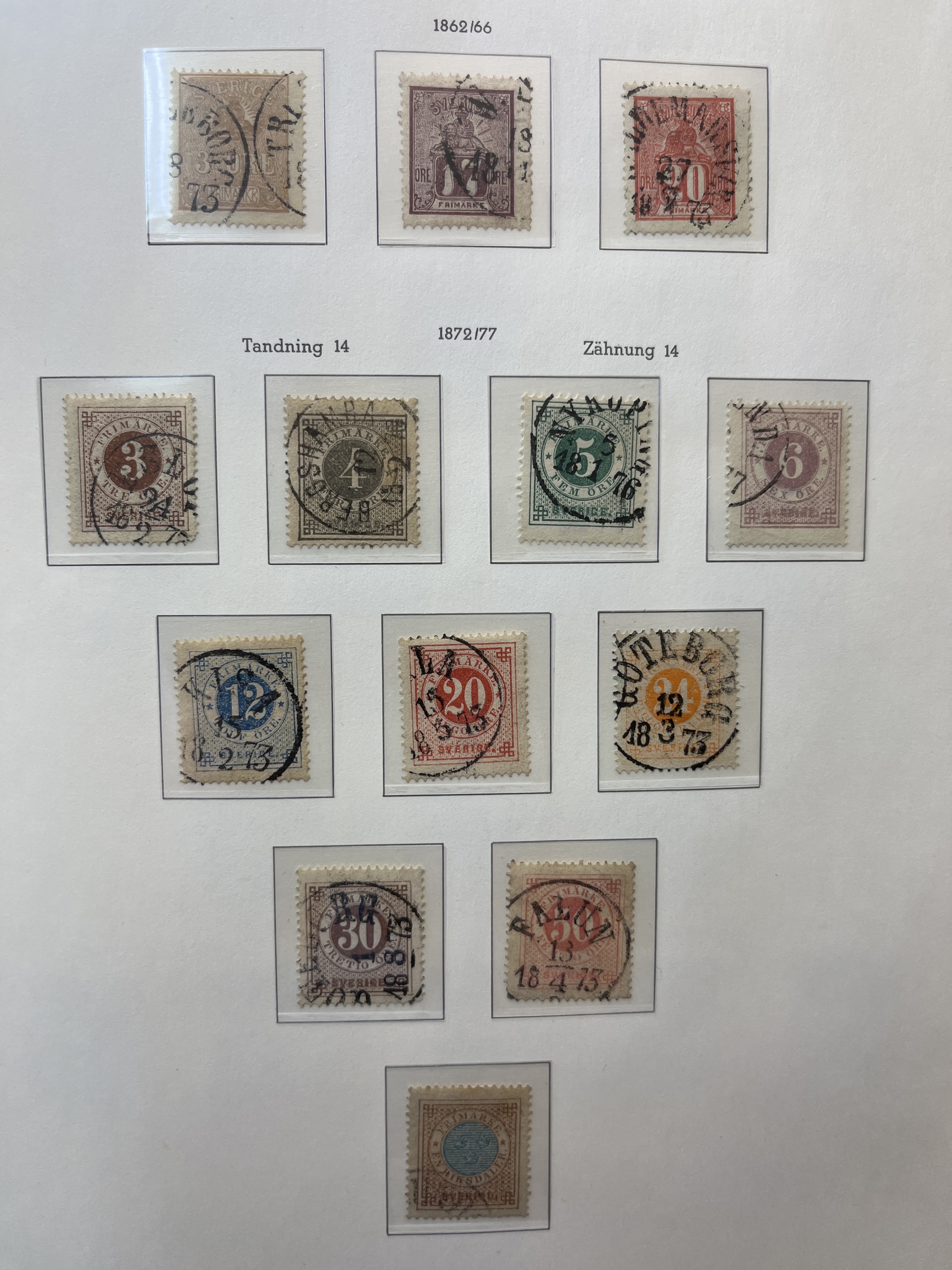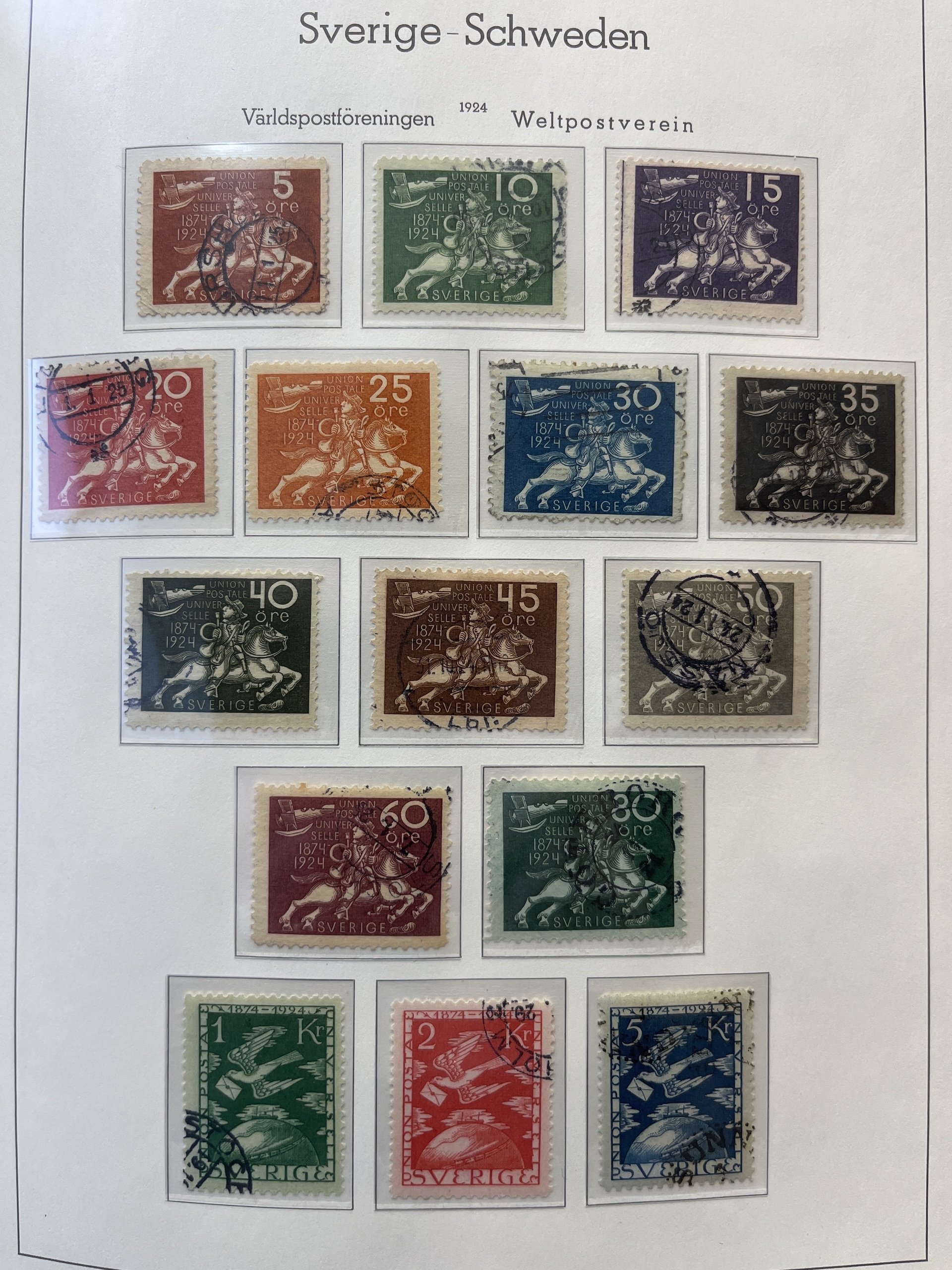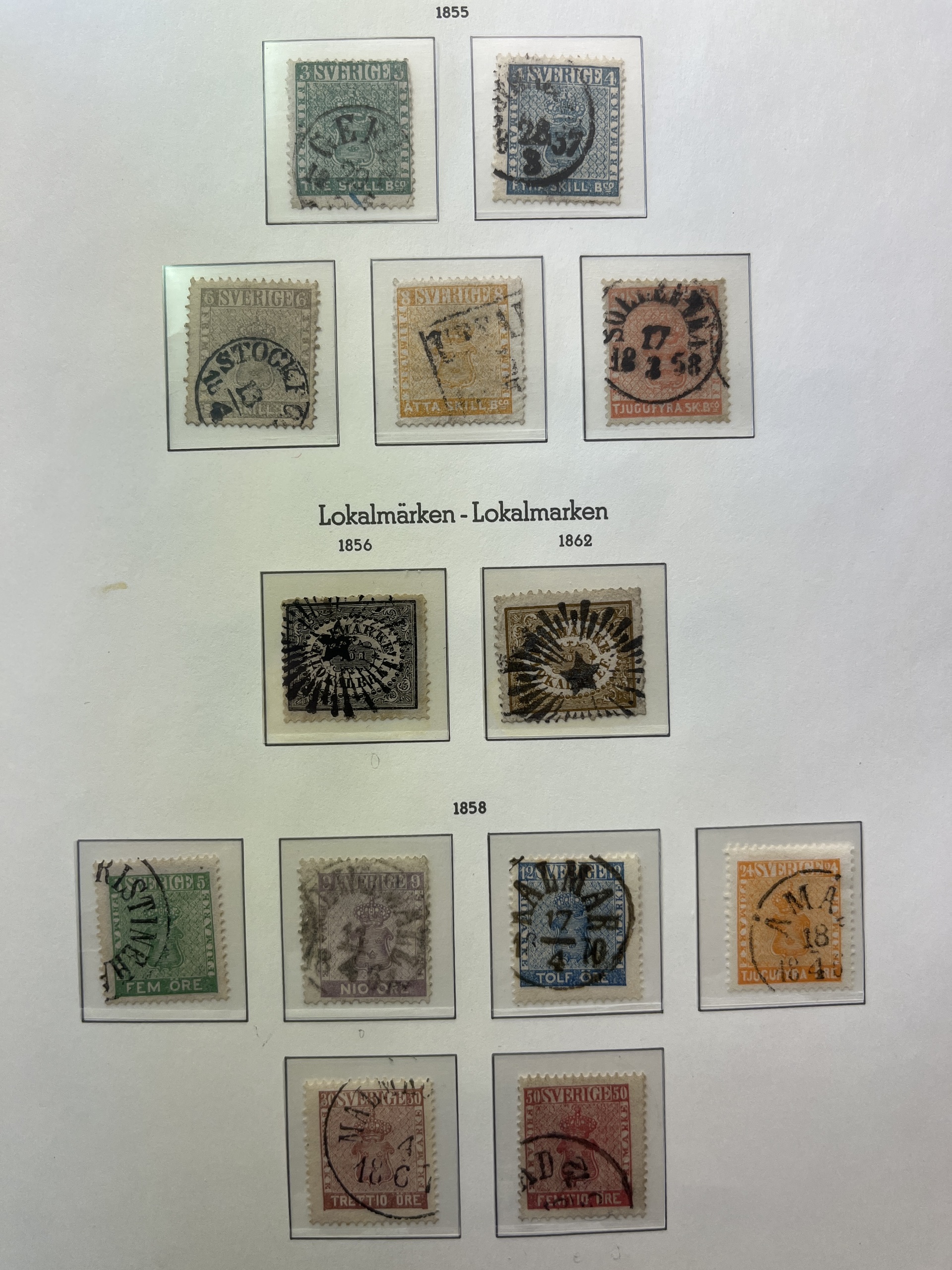 Sweden. Collection used 1855–1944 in Leuchtturm album with stamp mounts. With e.g. 3-24 skill bco in mixed quality, Landstorm I-III compl. 1924 year sets compl. No pairs. Please see a selection of scans at www.philea.se. In the beginning mixed quality, later fine.
