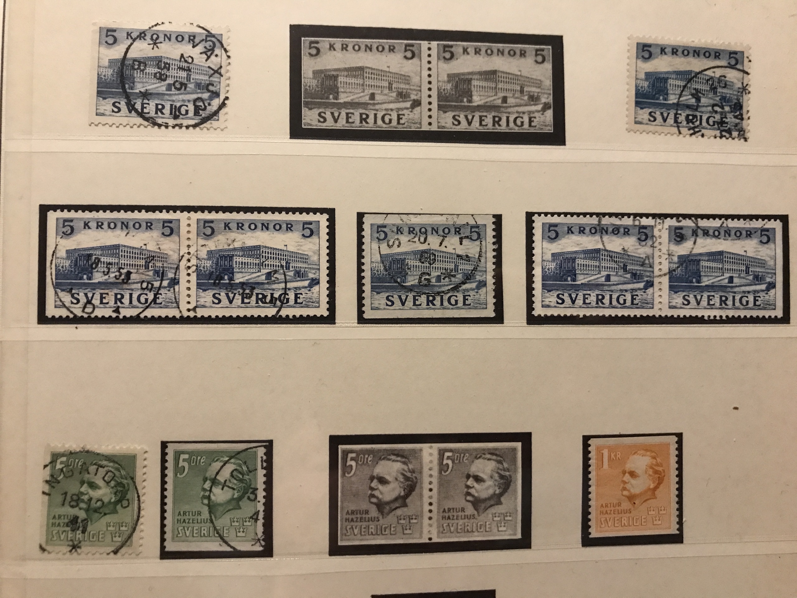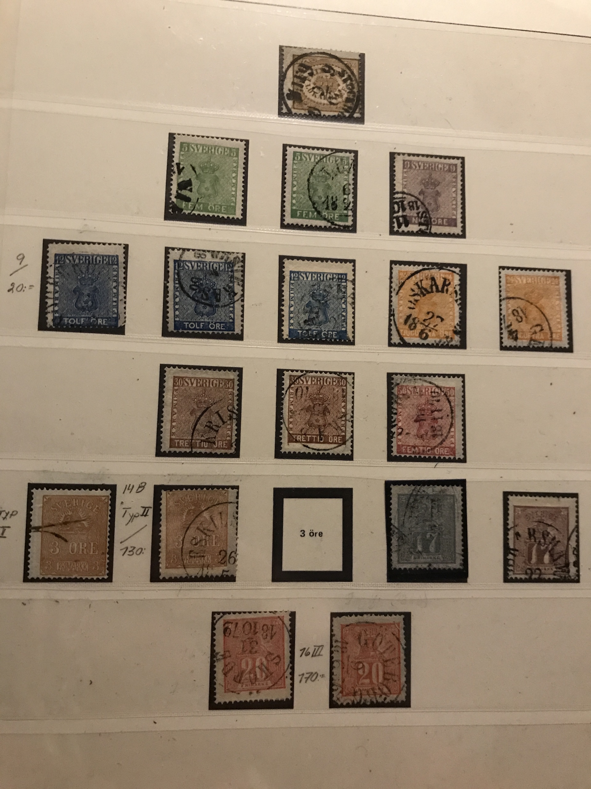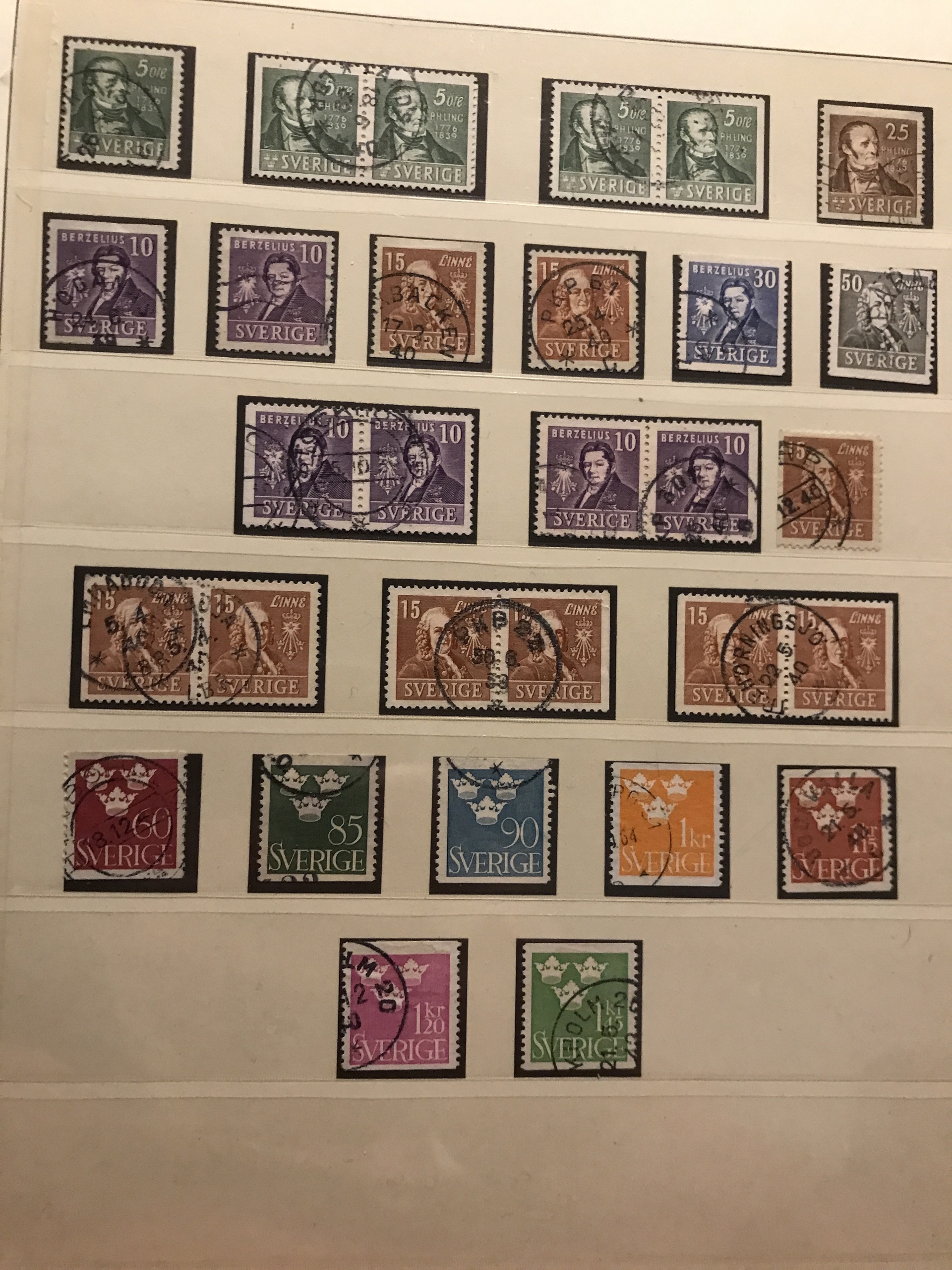 Sweden. Used. Collection 1855–1945 in Lindner Falzlos album incl. 4- and 8-skill, both local stamps, over complete Coat-of Arms, Lion types incl. two 17 öre, good Circle types and official stamps incl. Tj1–10, cpl. Landstorm II, Congress and UPU, 22 BC/CB-pairs incl. e.g. both Berzelius and Stockholm castle, cpl. postage due stamps, etc. Please see a selection of scans at www.philea.se.