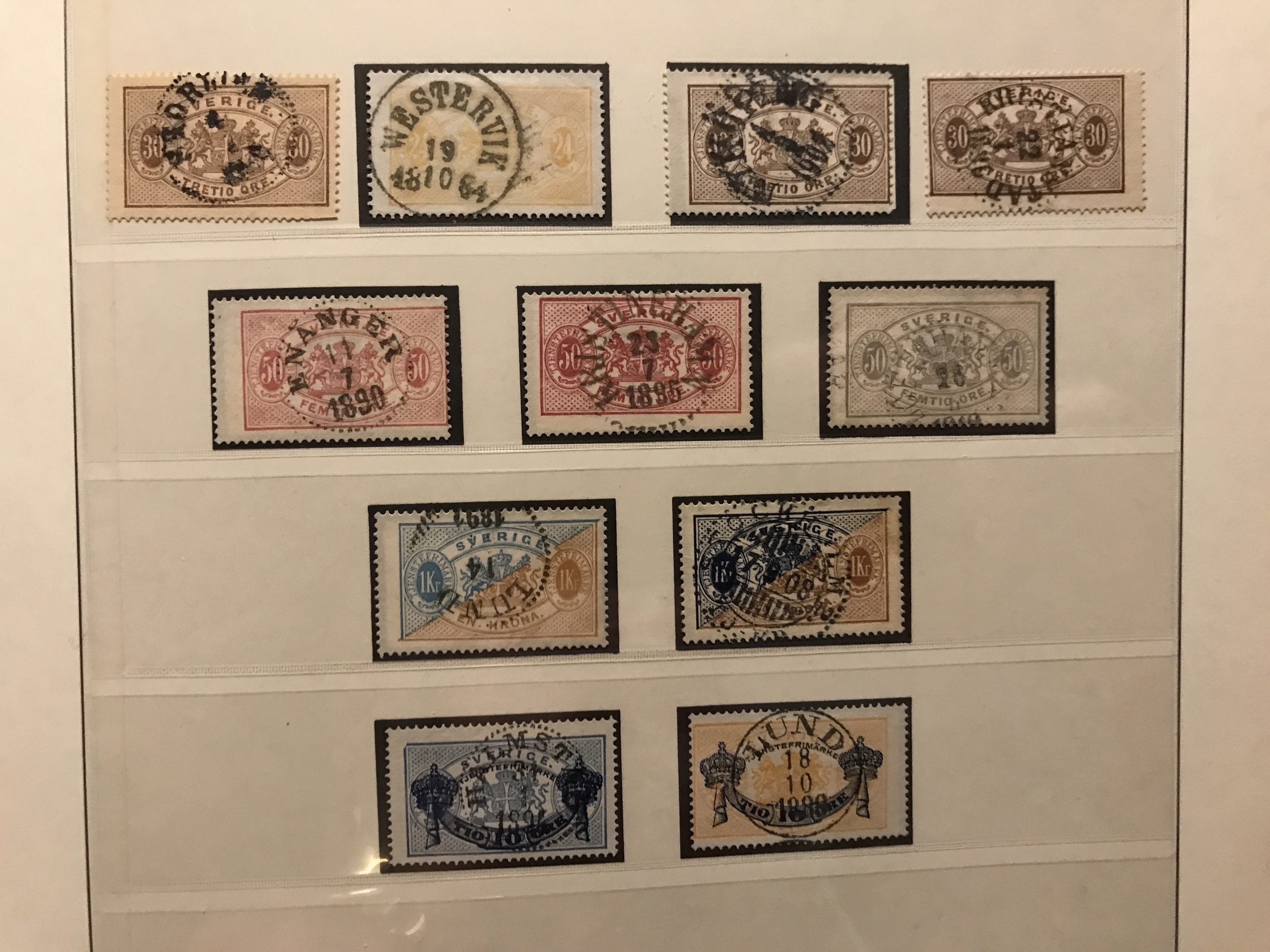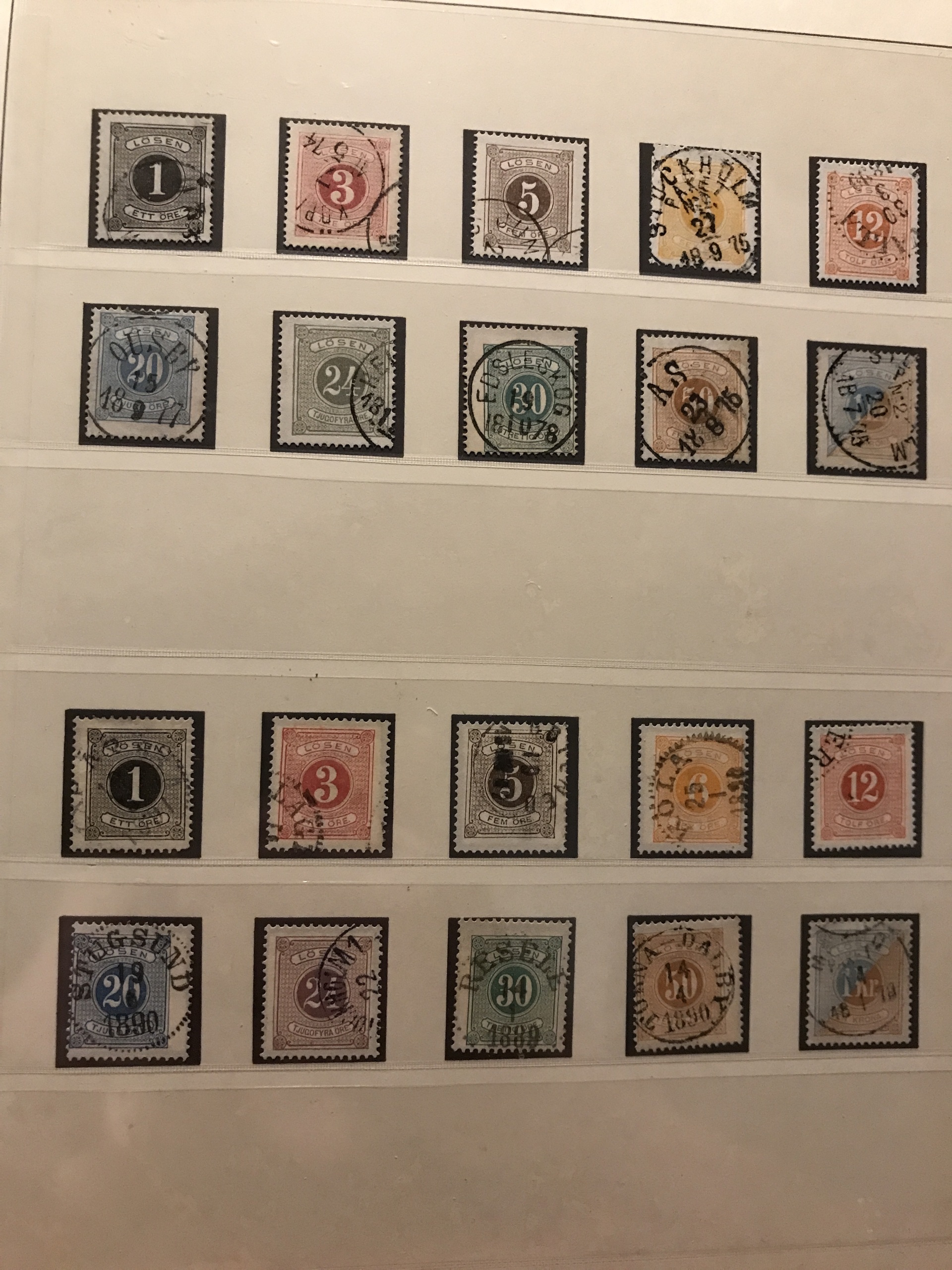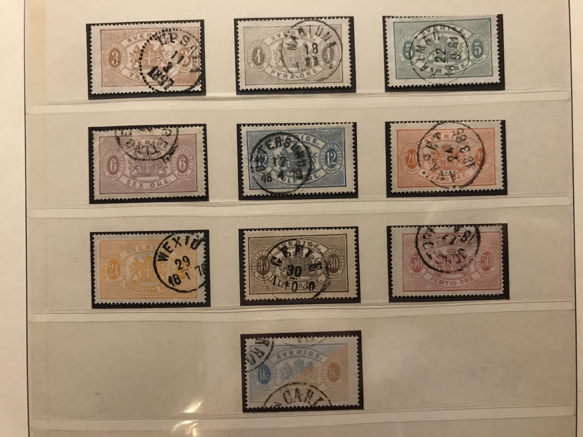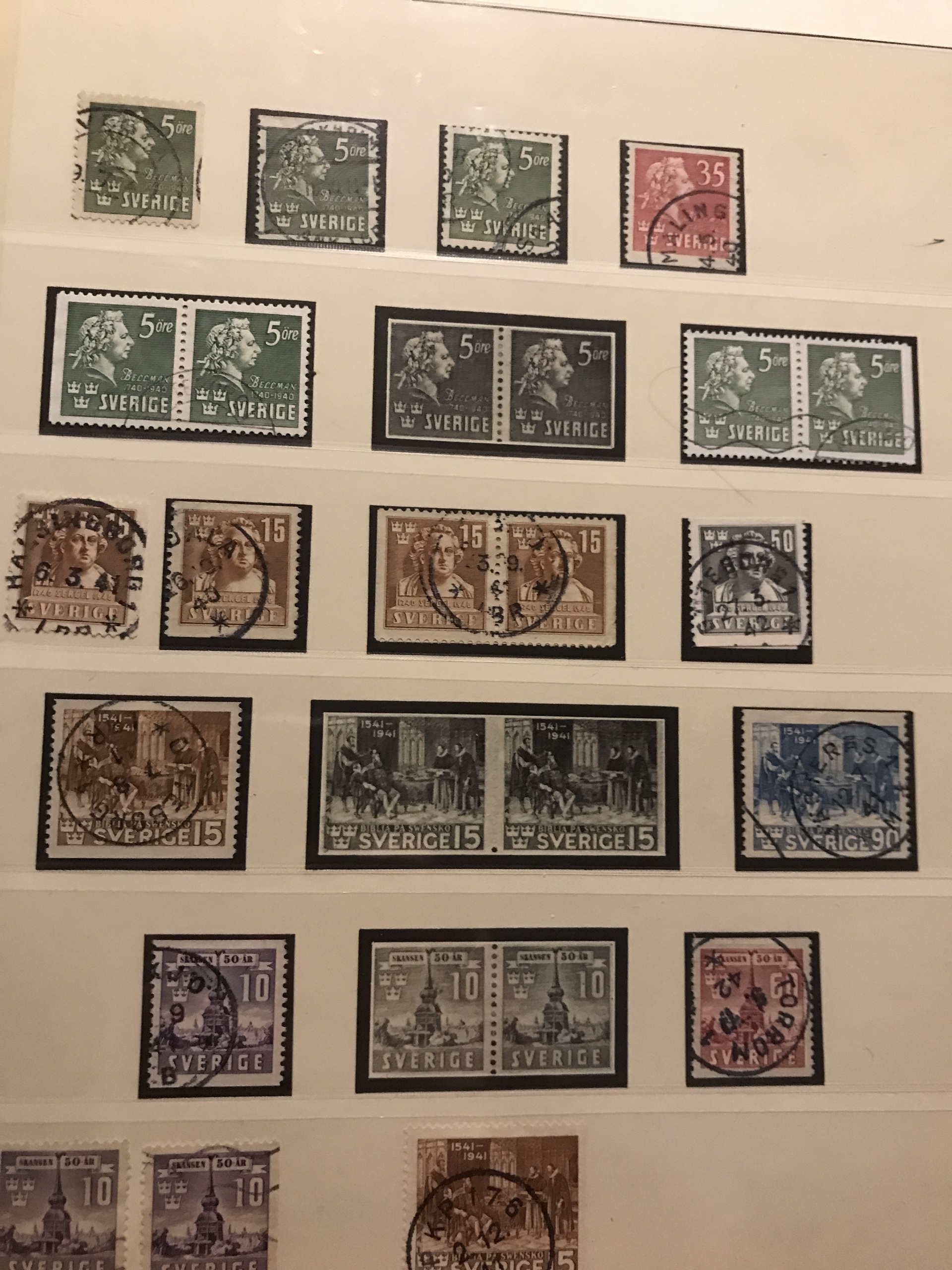 Sweden. Used. Collection 1855–1945 in Lindner Falzlos album incl. 4- and 8-skill, both local stamps, over complete Coat-of Arms, Lion types incl. two 17 öre, good Circle types and official stamps incl. Tj1–10, cpl. Landstorm II, Congress and UPU, 22 BC/CB-pairs incl. e.g. both Berzelius and Stockholm castle, cpl. postage due stamps, etc. Please see a selection of scans at www.philea.se.