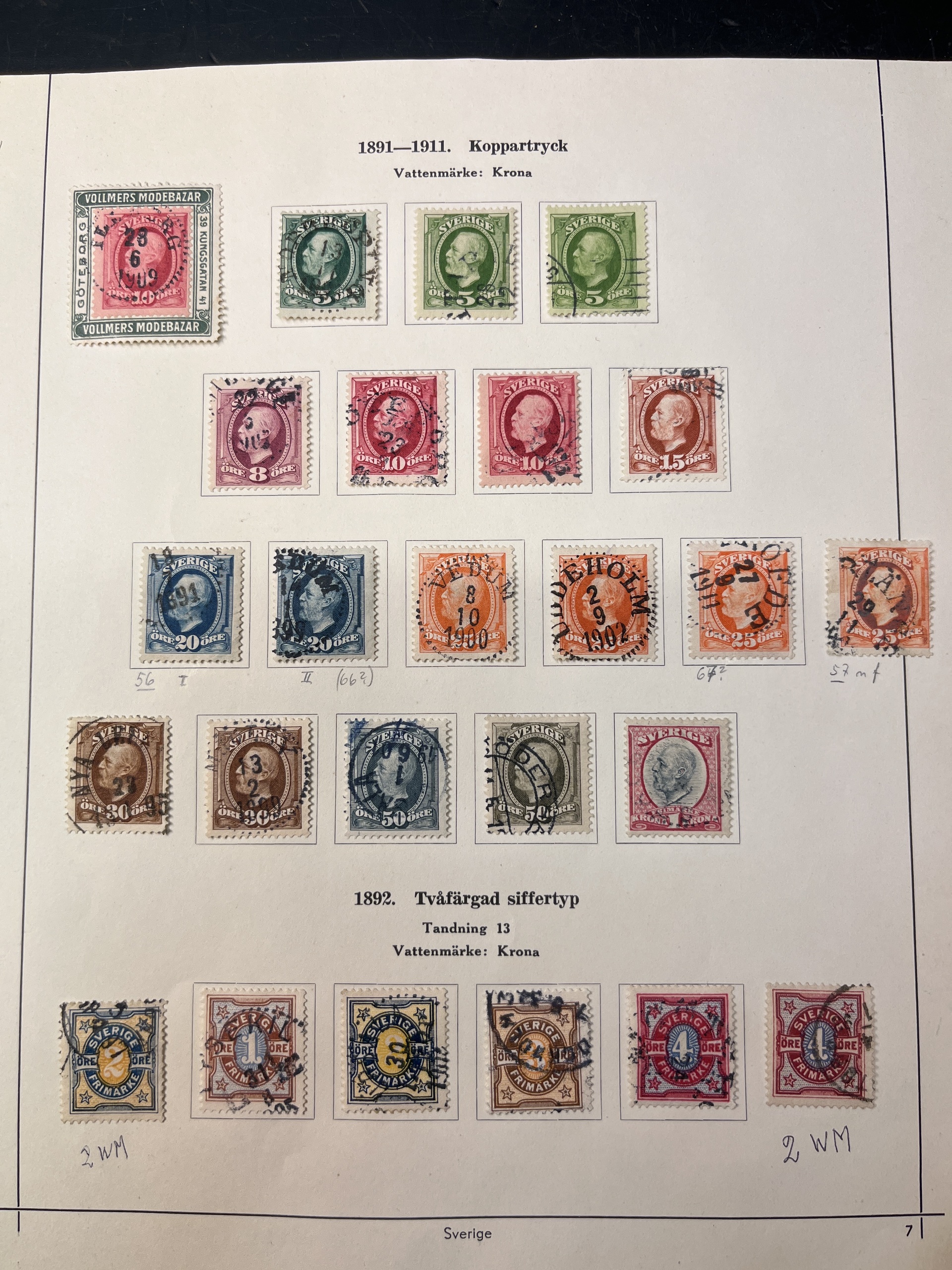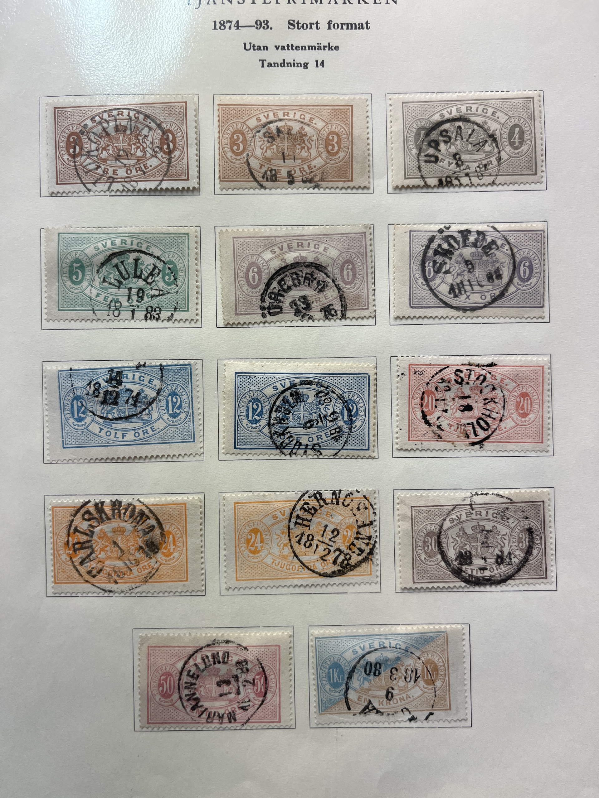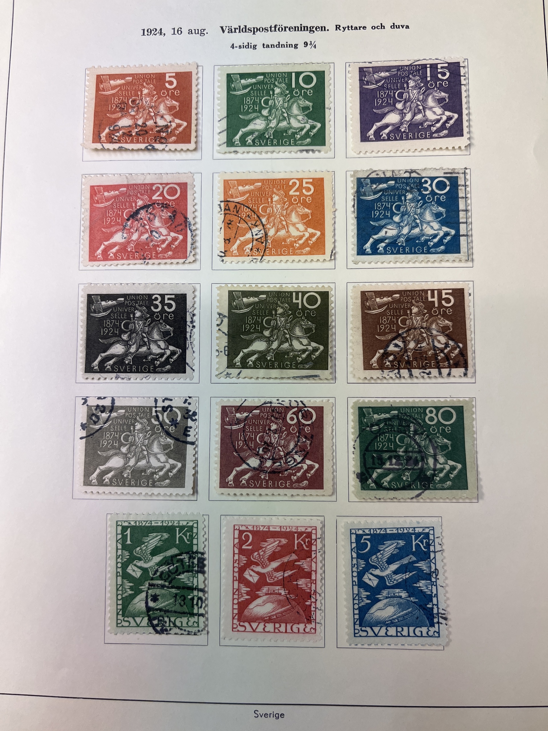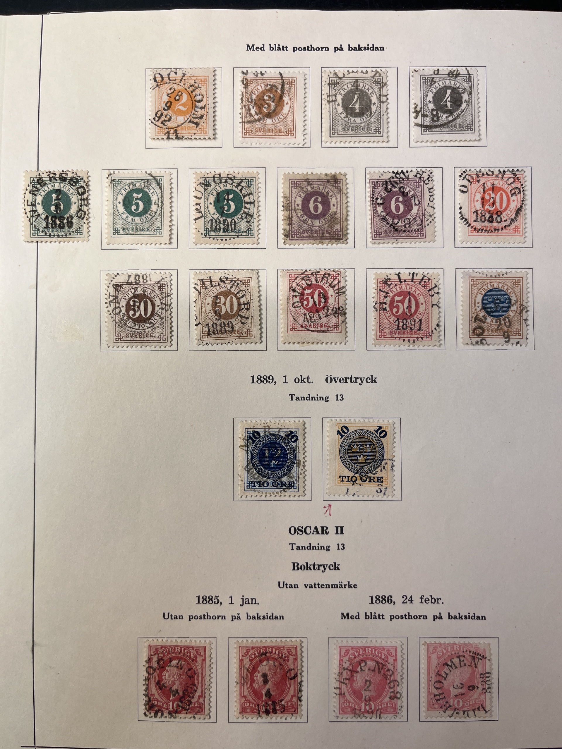 Sweden. Collection mostly used 1858–1949 in album. A rich collection with few gaps, e.g. complete sets of Coat-of-Arms öre, Lying Lion incl. 17 öre grey, Circle type incl. 1 Rd perf. 13 and 1924 year sets, also e.g. many Coil stamps and BC/CB-pairs. Please see a selection of scans at www.philea.se. Mostly fine quality.