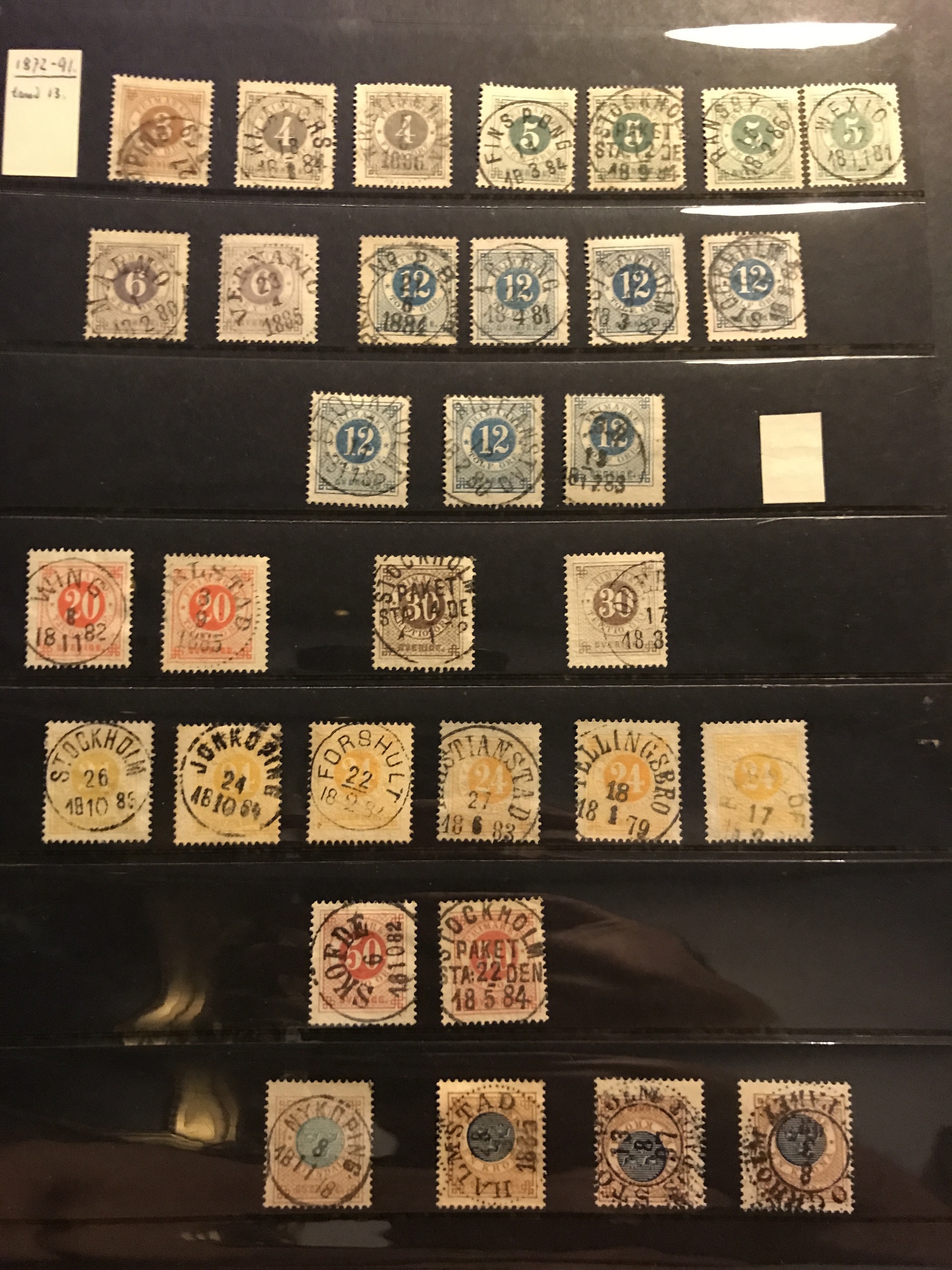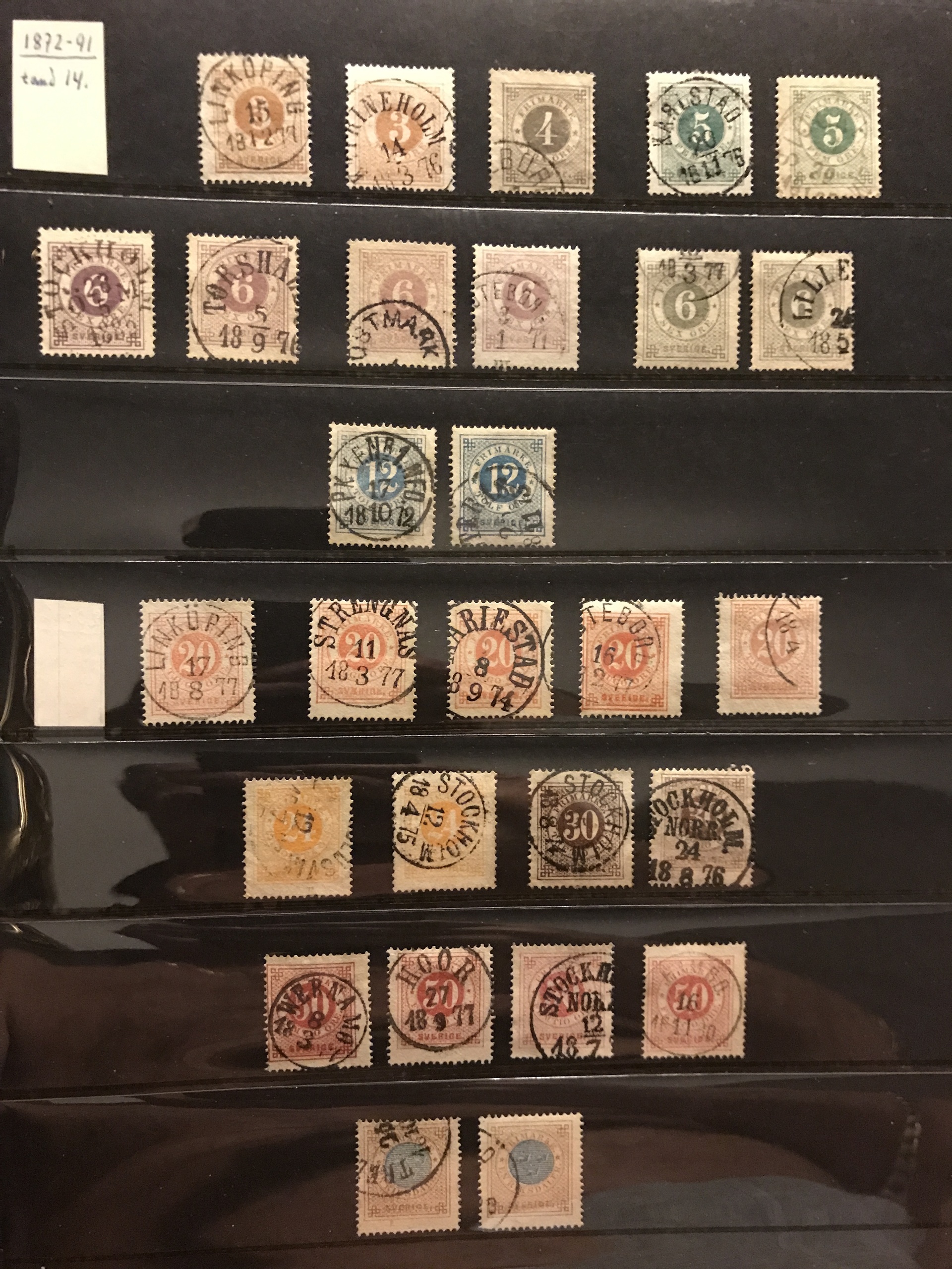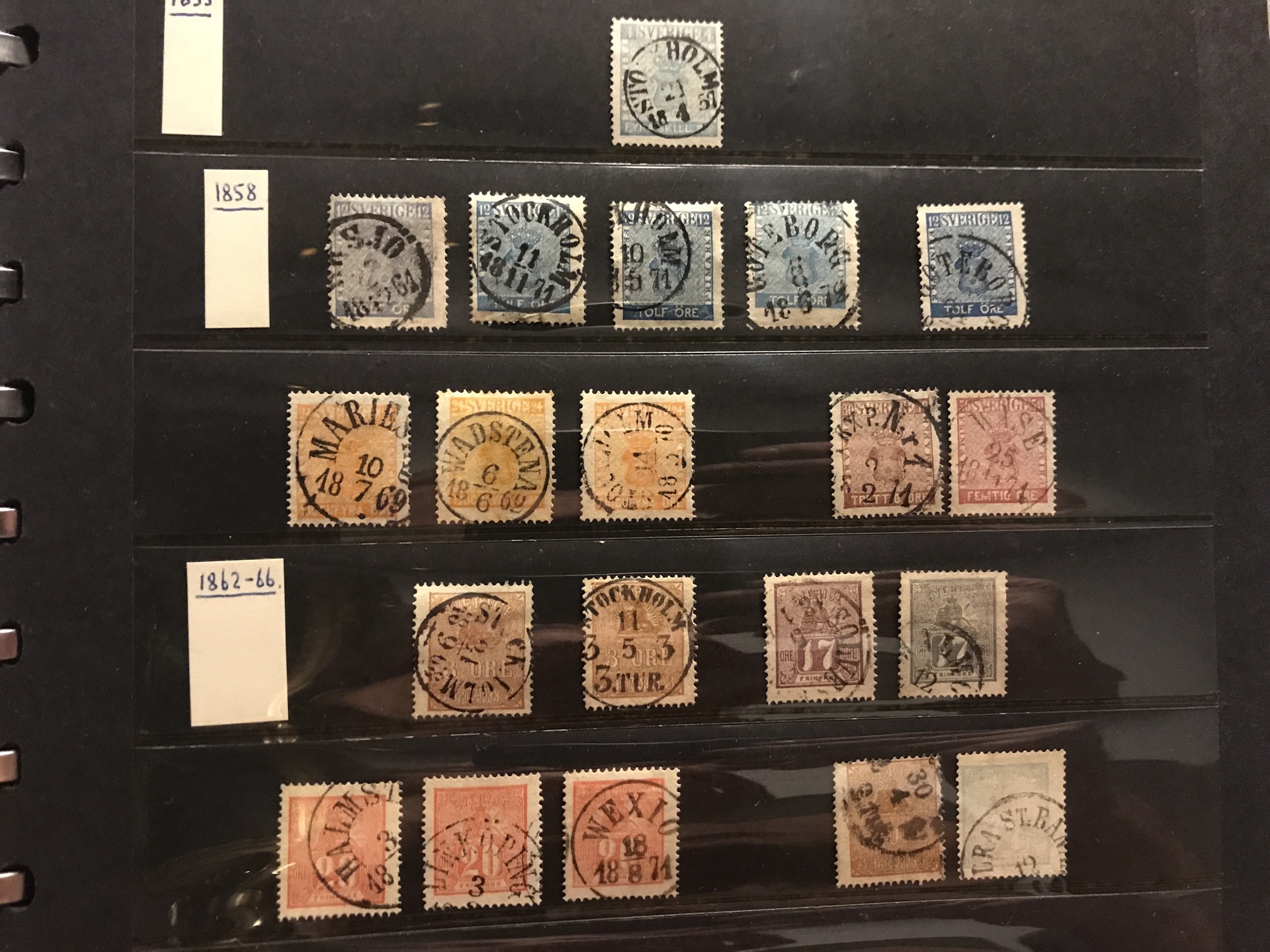 Sweden. Used. Collection 4skill–1975 in four Visir binders incl. F12, nice Lion types and Circle types incl. Rd13, F124, a specialized section coil stamps, cpl. Congress and UPU, ca. 20 BC/CB-pairs and several nice cancellations, etc. Please see a selection of scans at www.philea.se. Mostly fine quality. Approx. 5 kg.