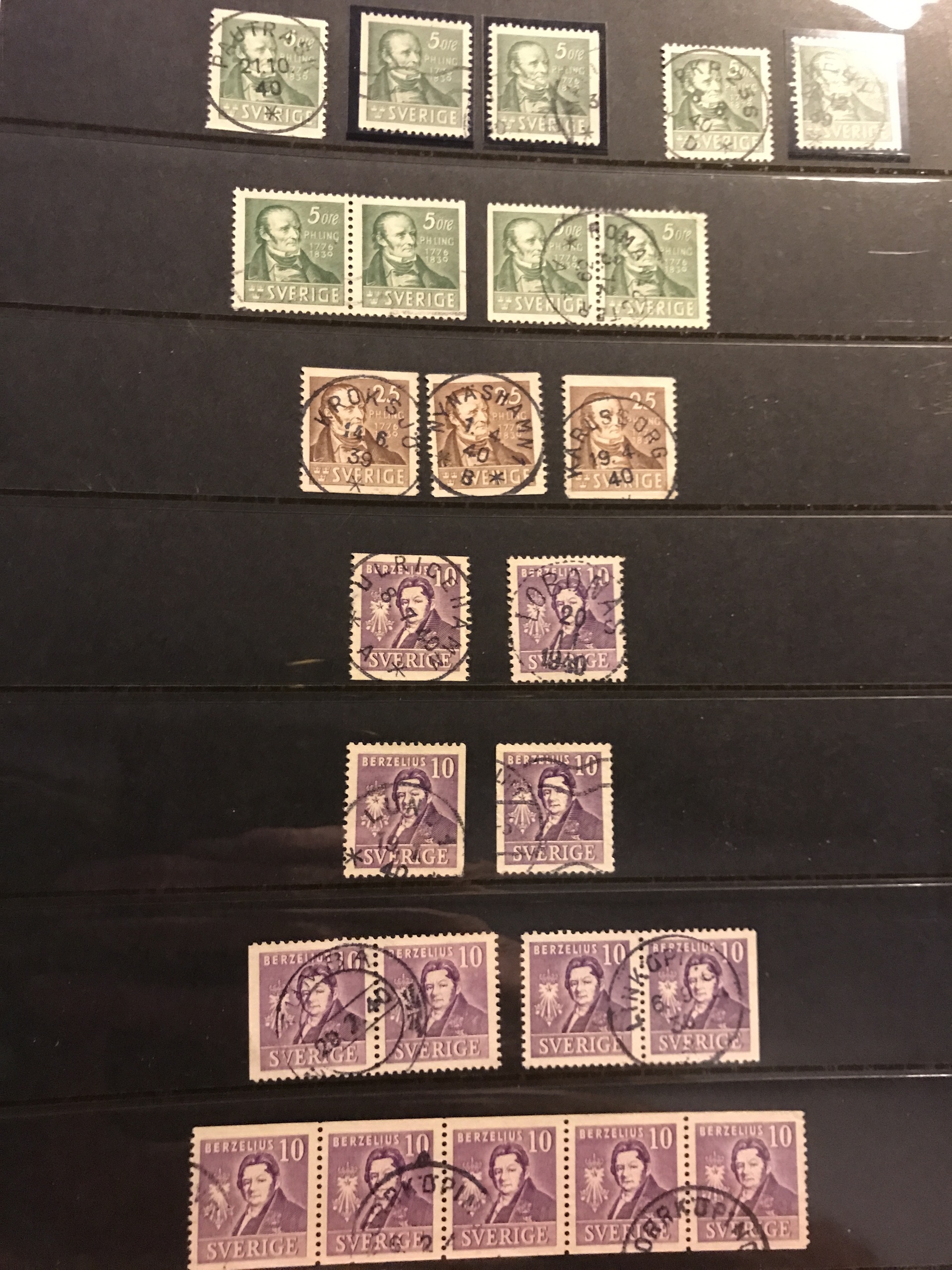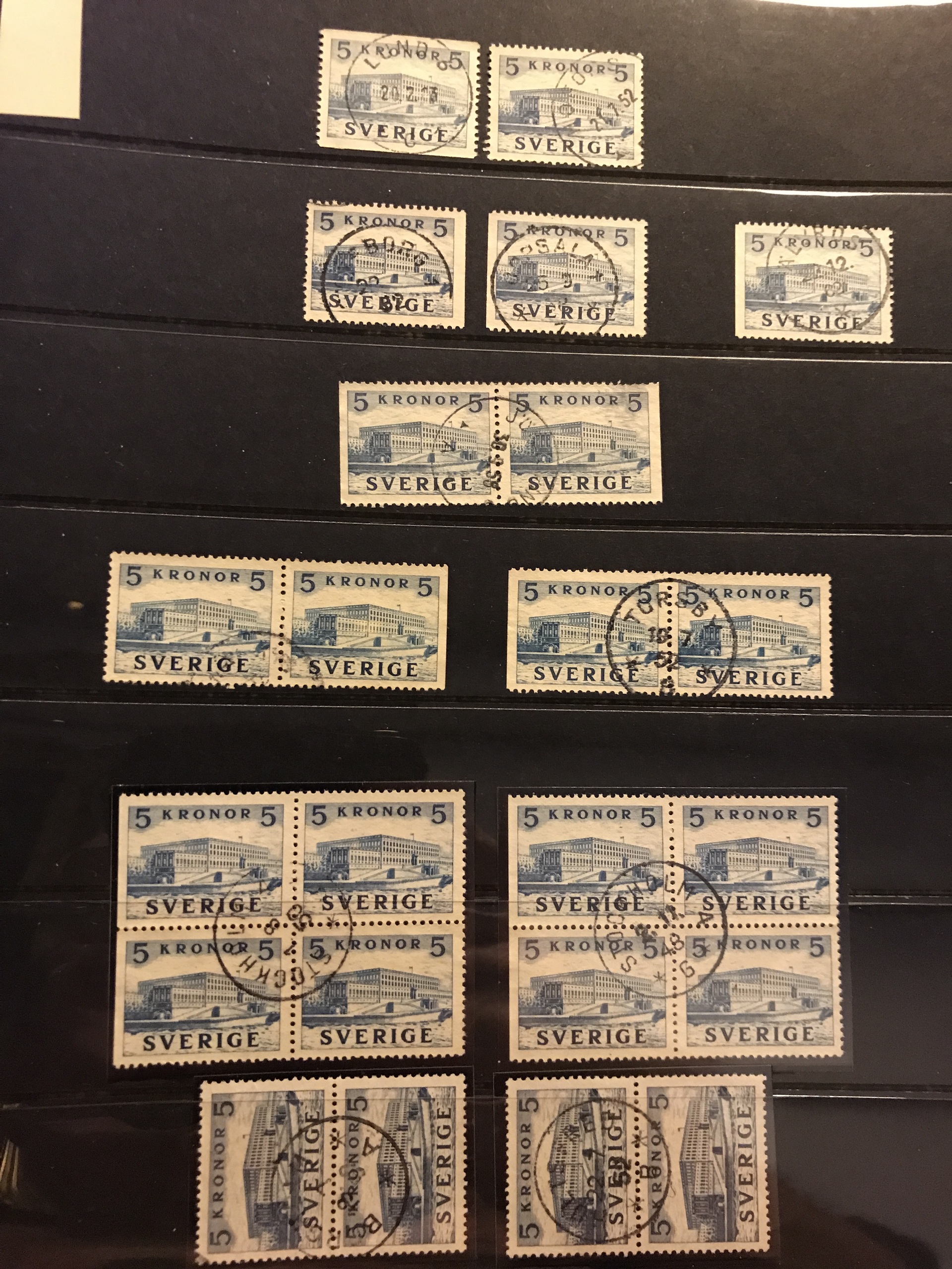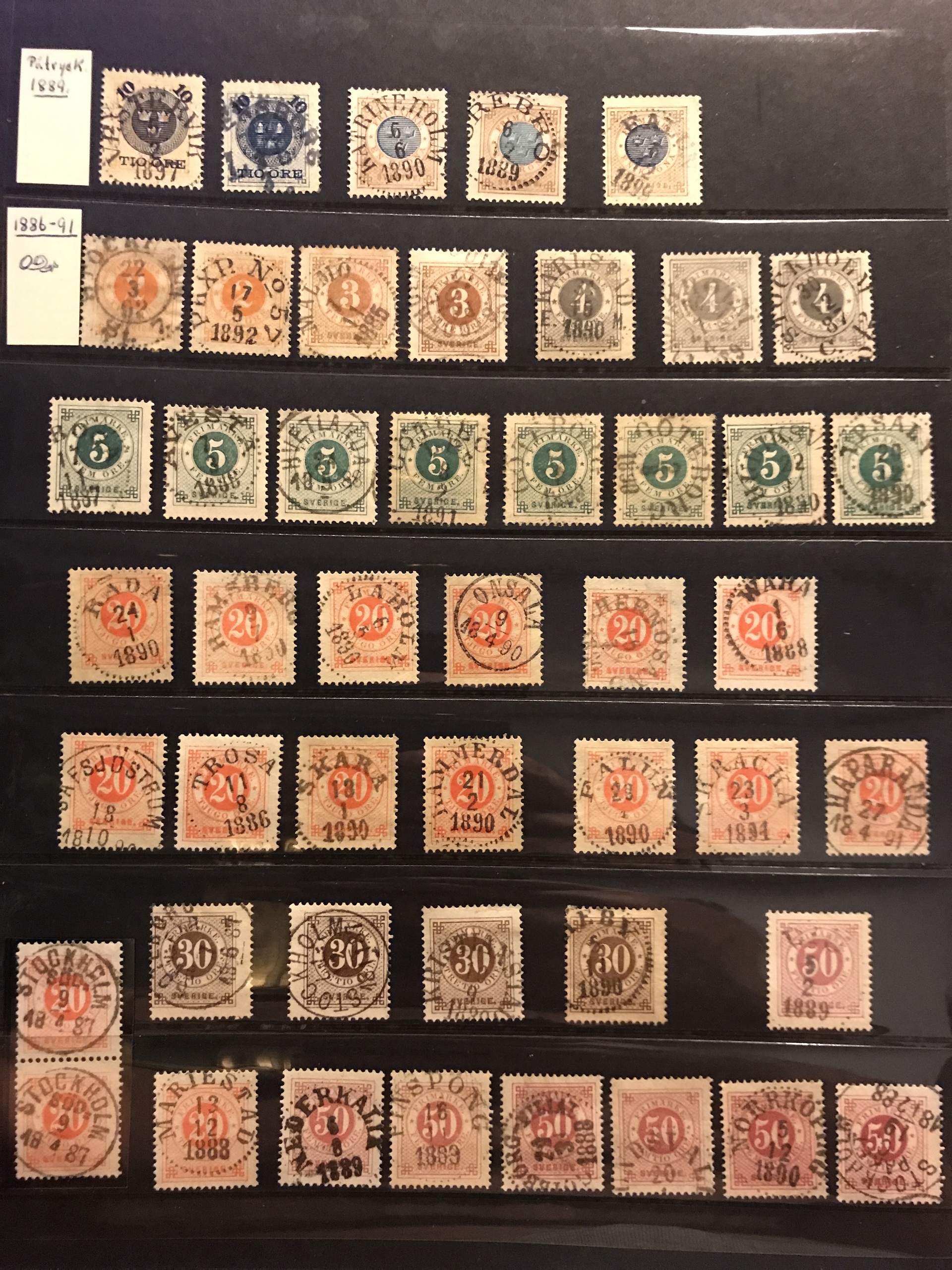 Sweden. Used. Collection 4skill–1975 in four Visir binders incl. F12, nice Lion types and Circle types incl. Rd13, F124, a specialized section coil stamps, cpl. Congress and UPU, ca. 20 BC/CB-pairs and several nice cancellations, etc. Please see a selection of scans at www.philea.se. Mostly fine quality. Approx. 5 kg.