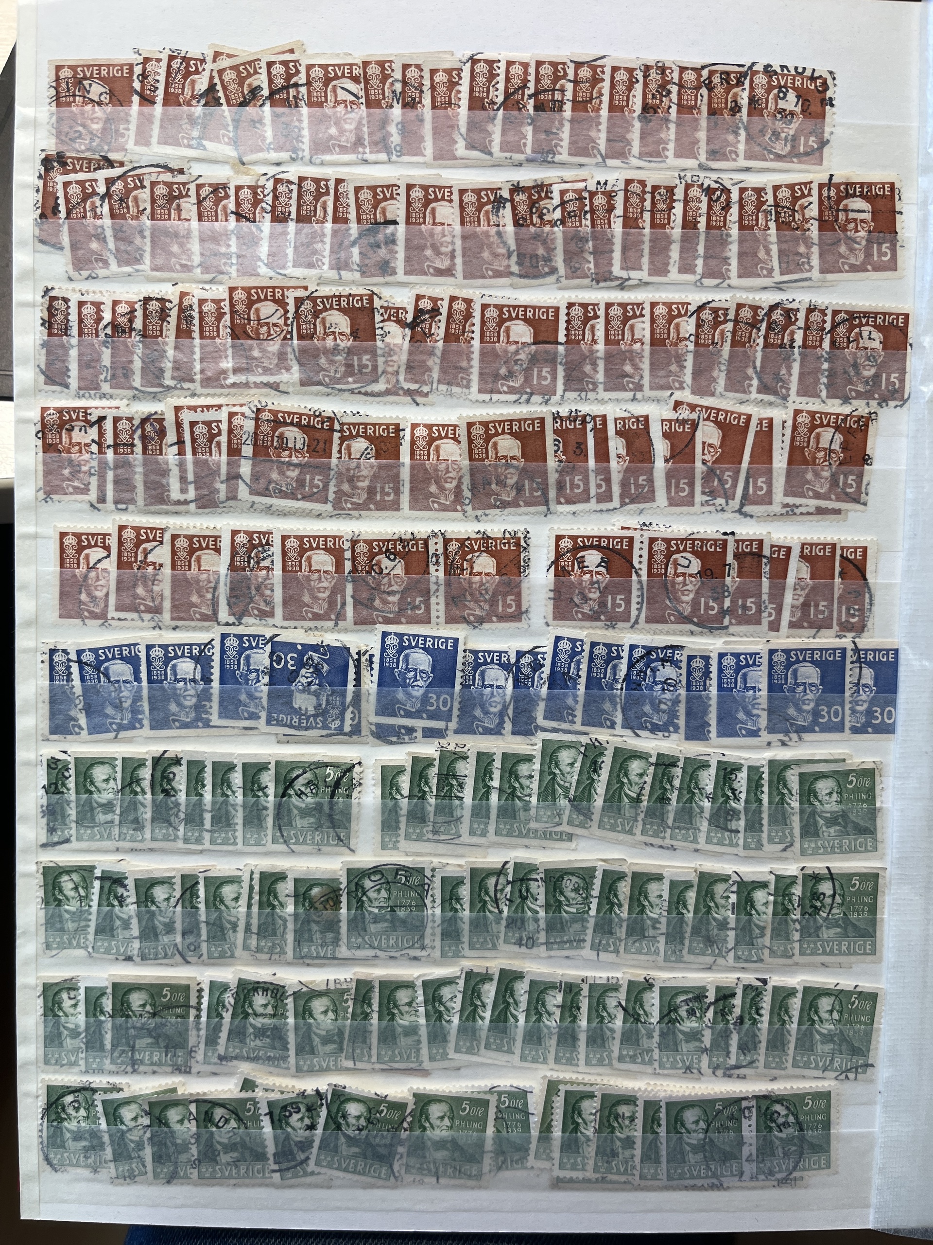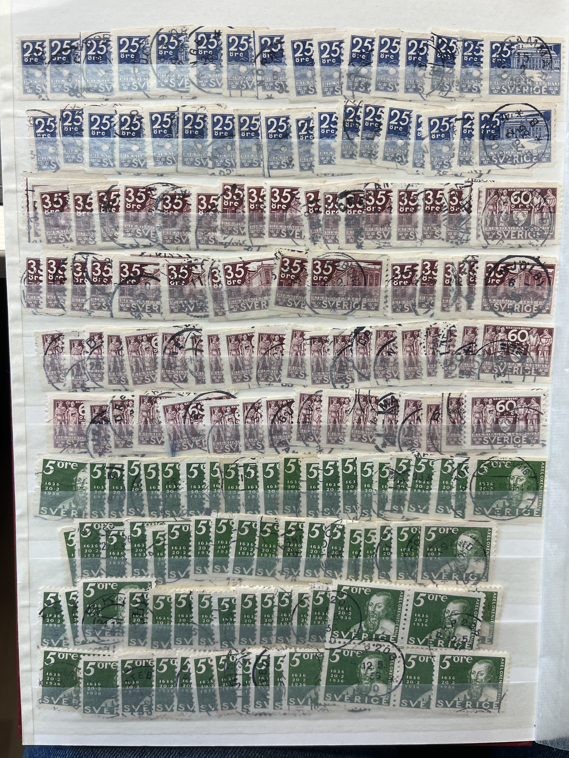 Sweden. Accumulation used 1930–1939 in stockbook with e.g. many BC/CB-pairs. The entire lot is presented at www.philea.se.