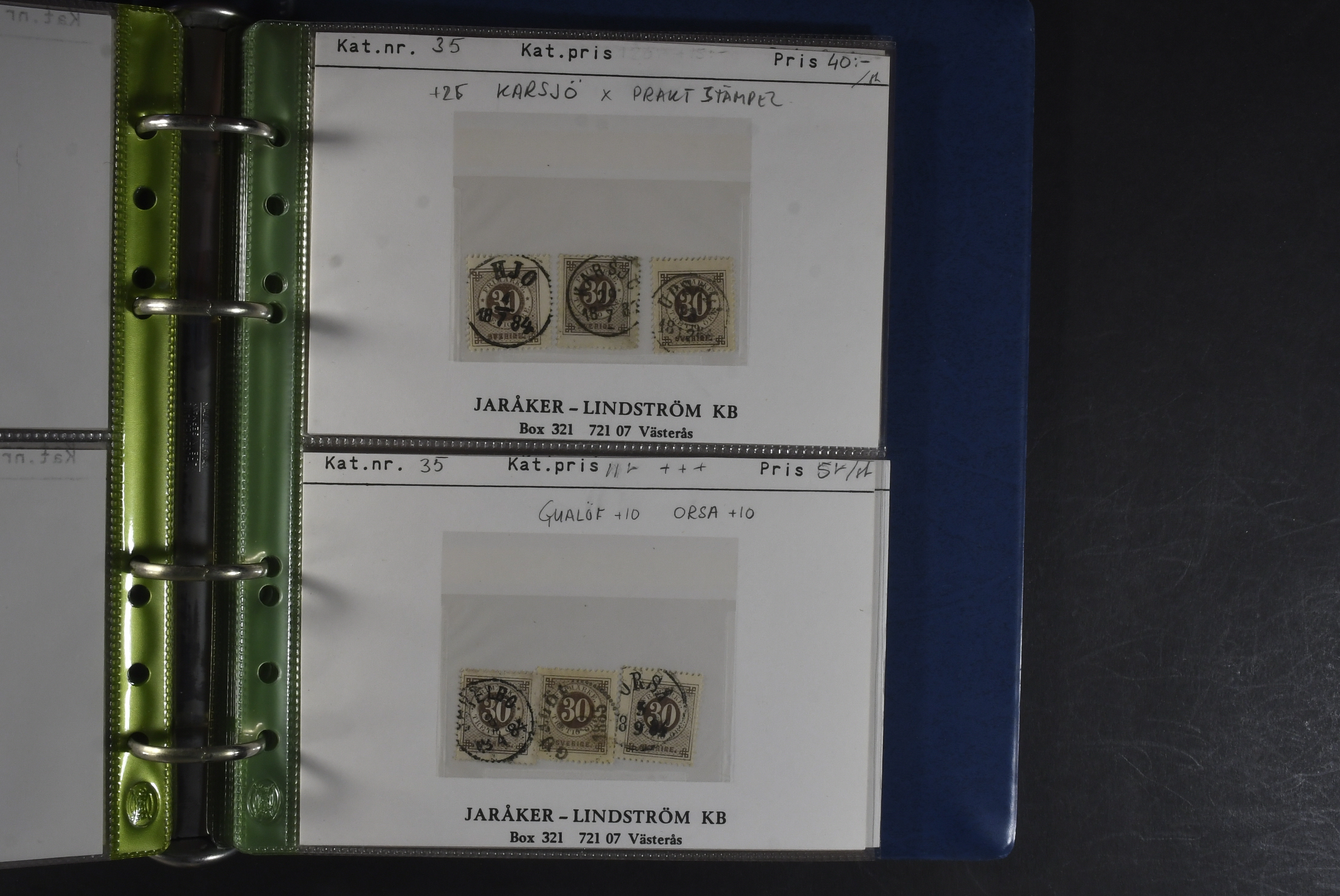 Sweden. Collection used small dealer's stock in three binders. Coat-of-Arms–Circle type incl. Riksdaler in both perfs., plus large officials and postage dues. E.g. cancellations and shades, etc. The entire lot is presented at www.philea.se.