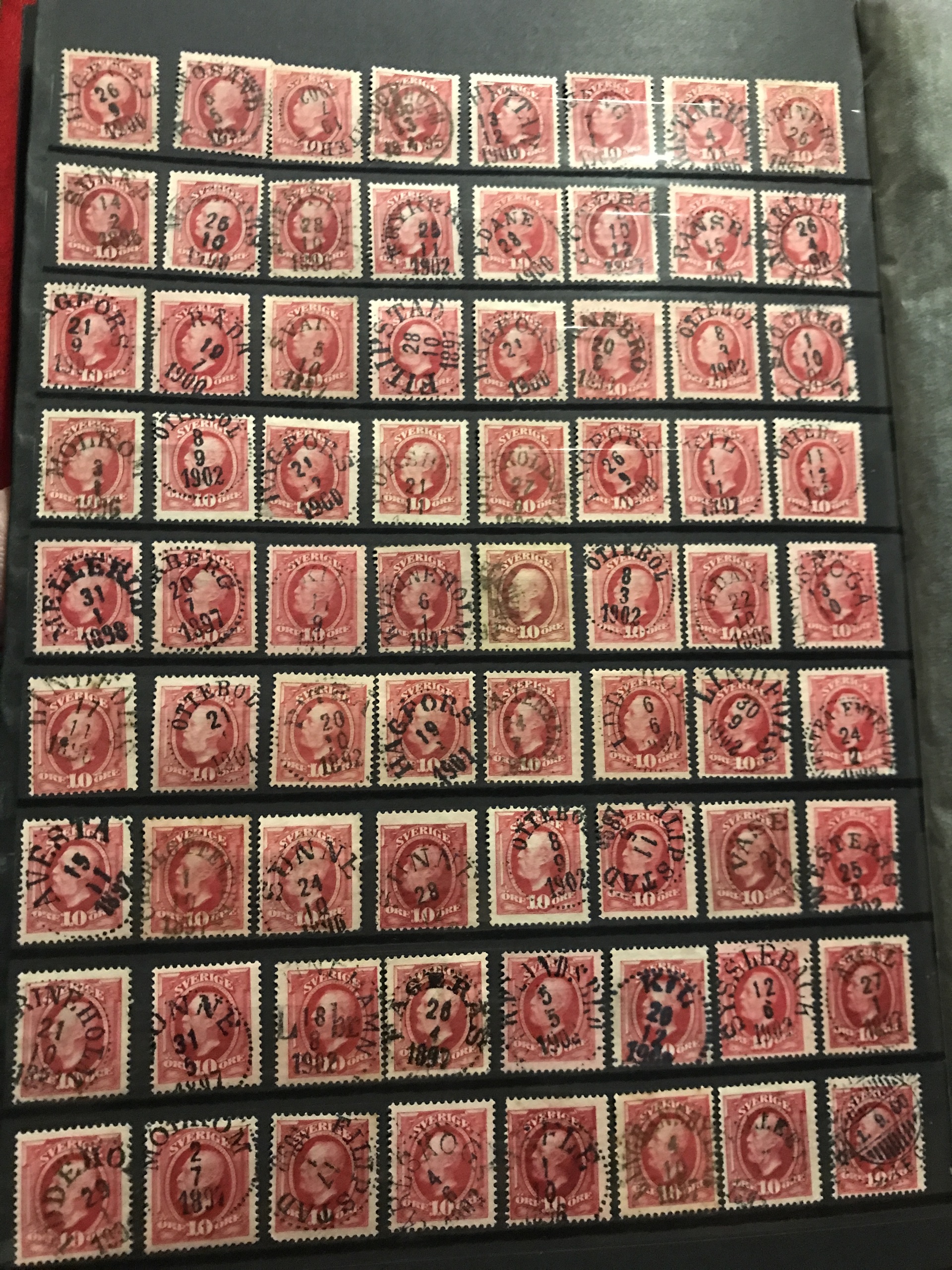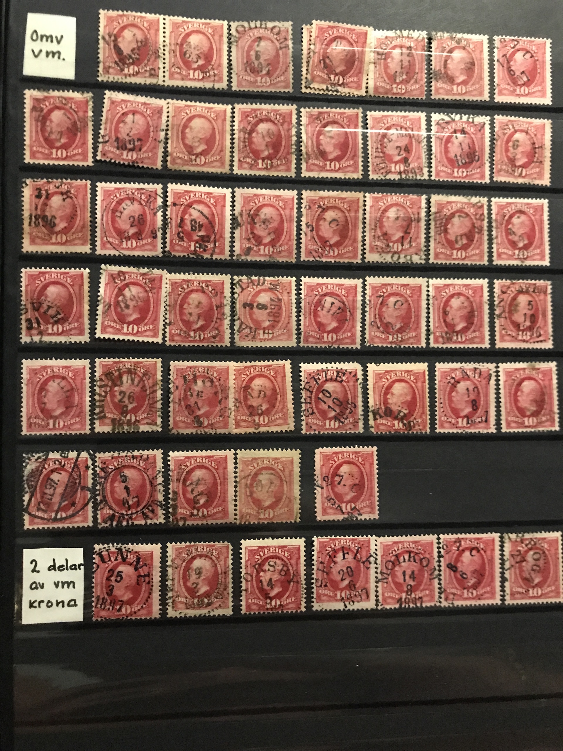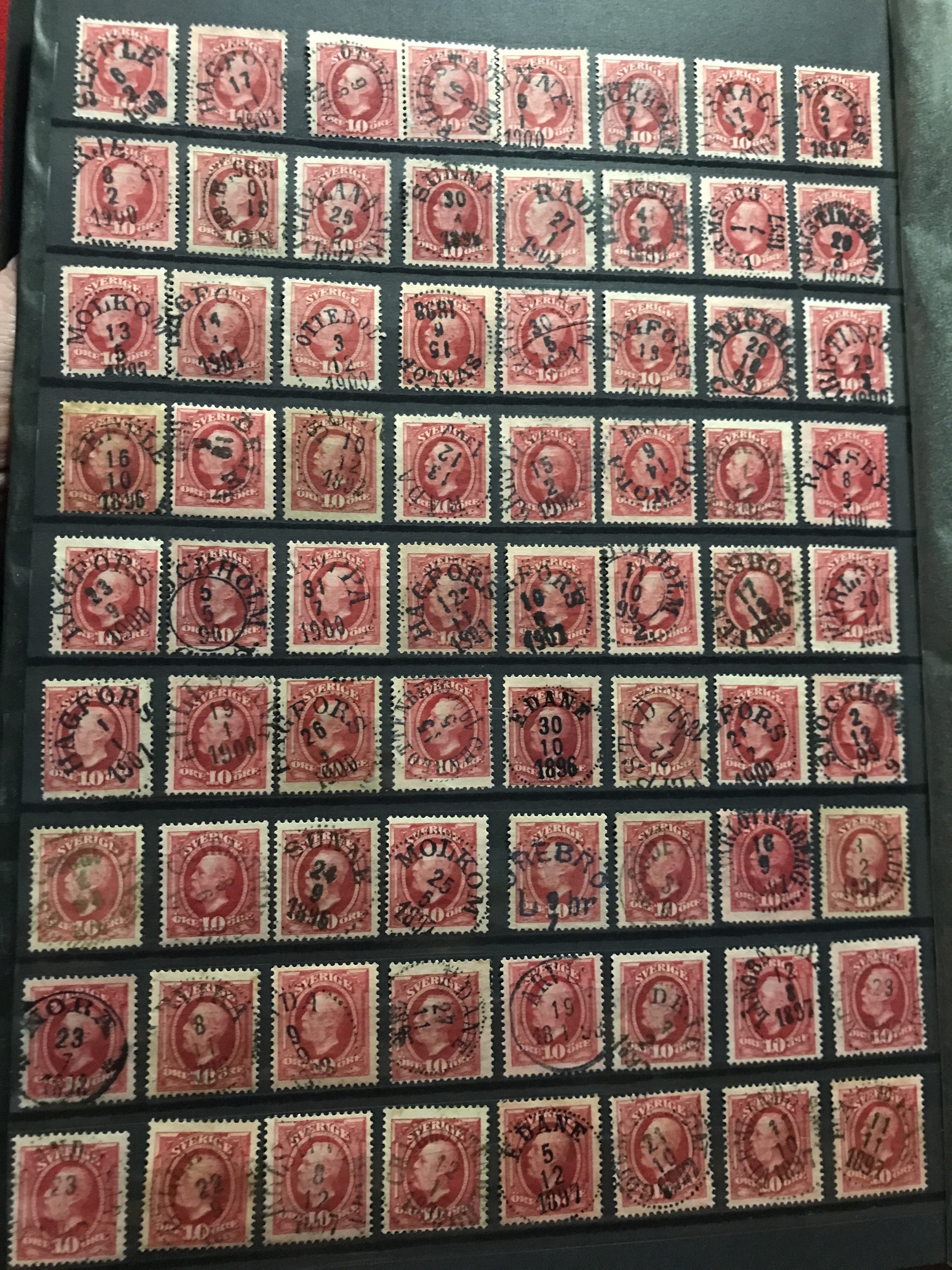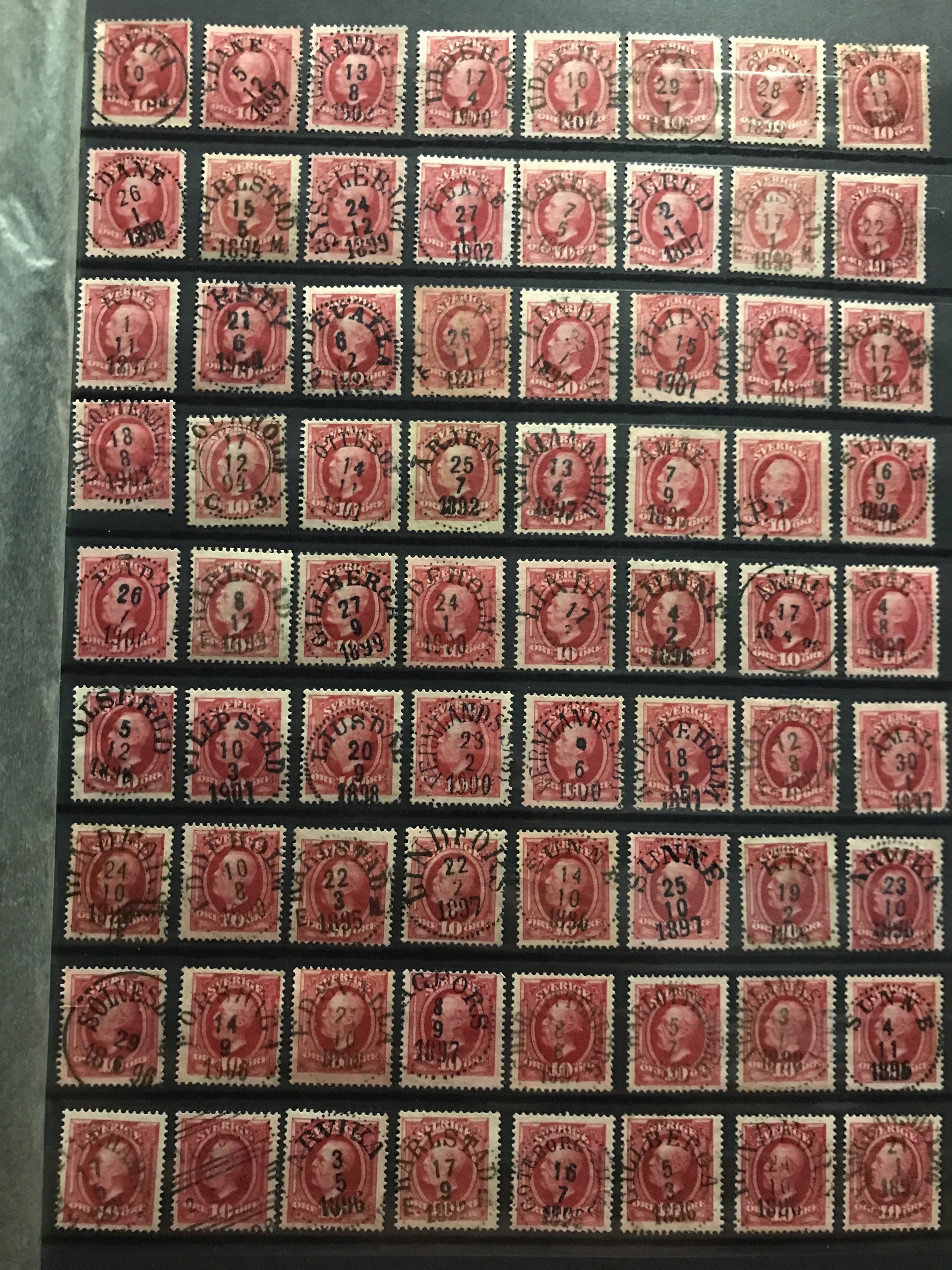 Sweden. Used. Stockbook with about 1700 Oscar mainly 10 öre incl. many nice cancellations and some inverted wmks, etc. Please see a selection of scans at www.philea.se. Mostly fine quality.