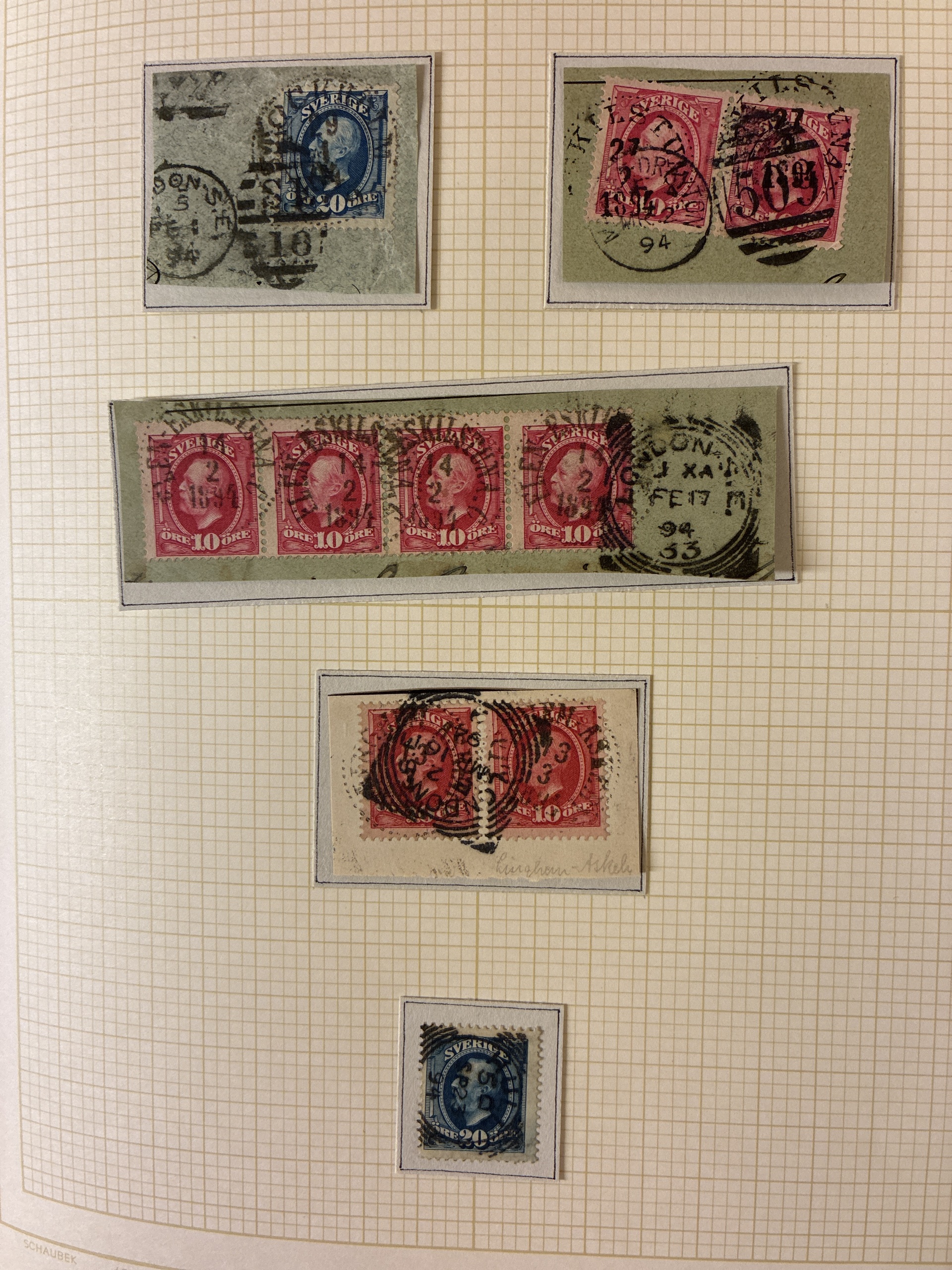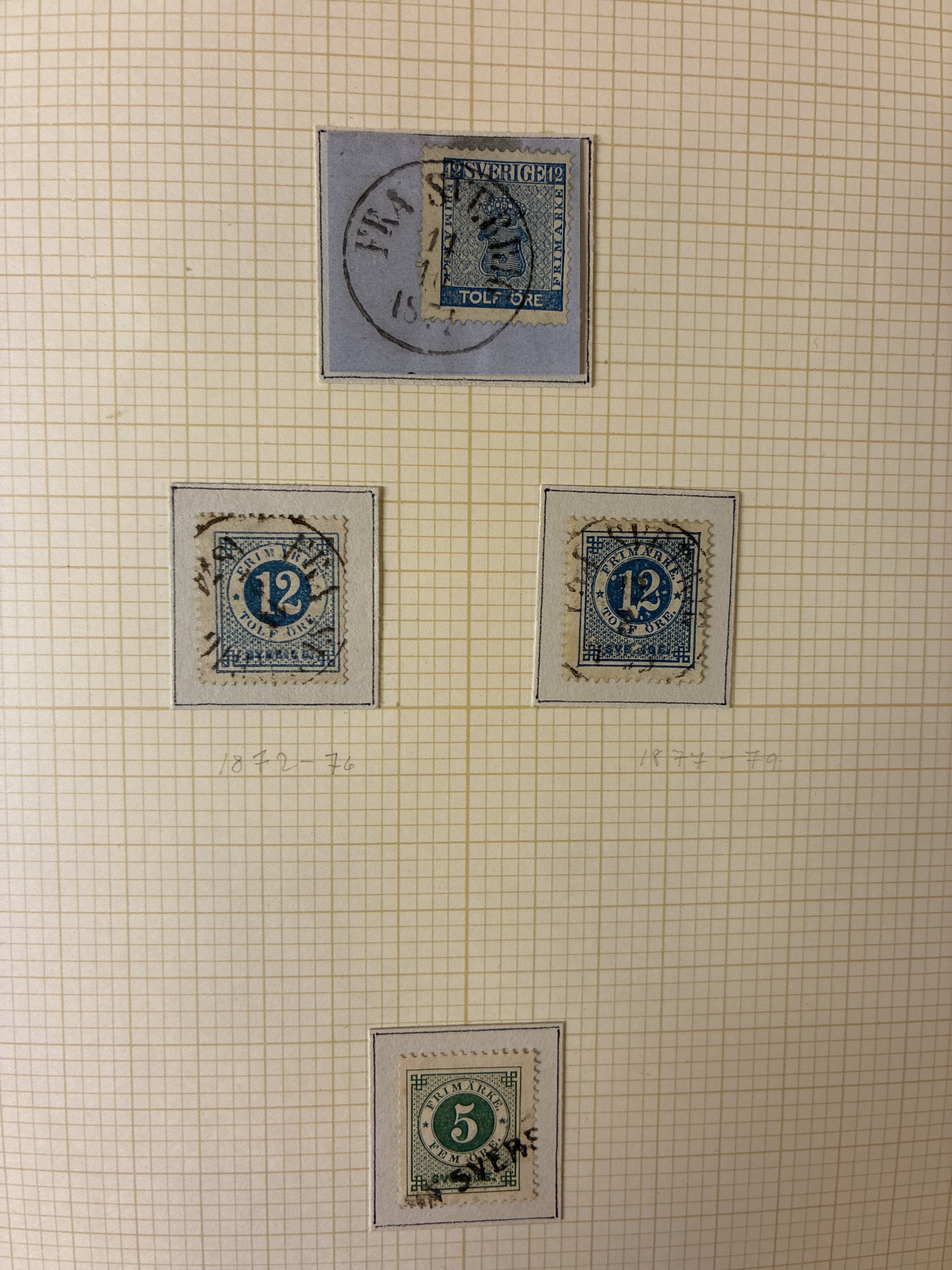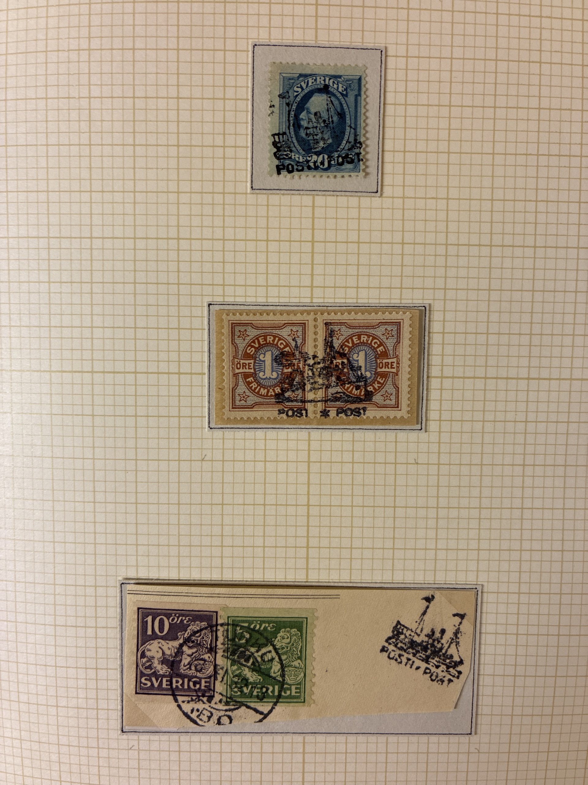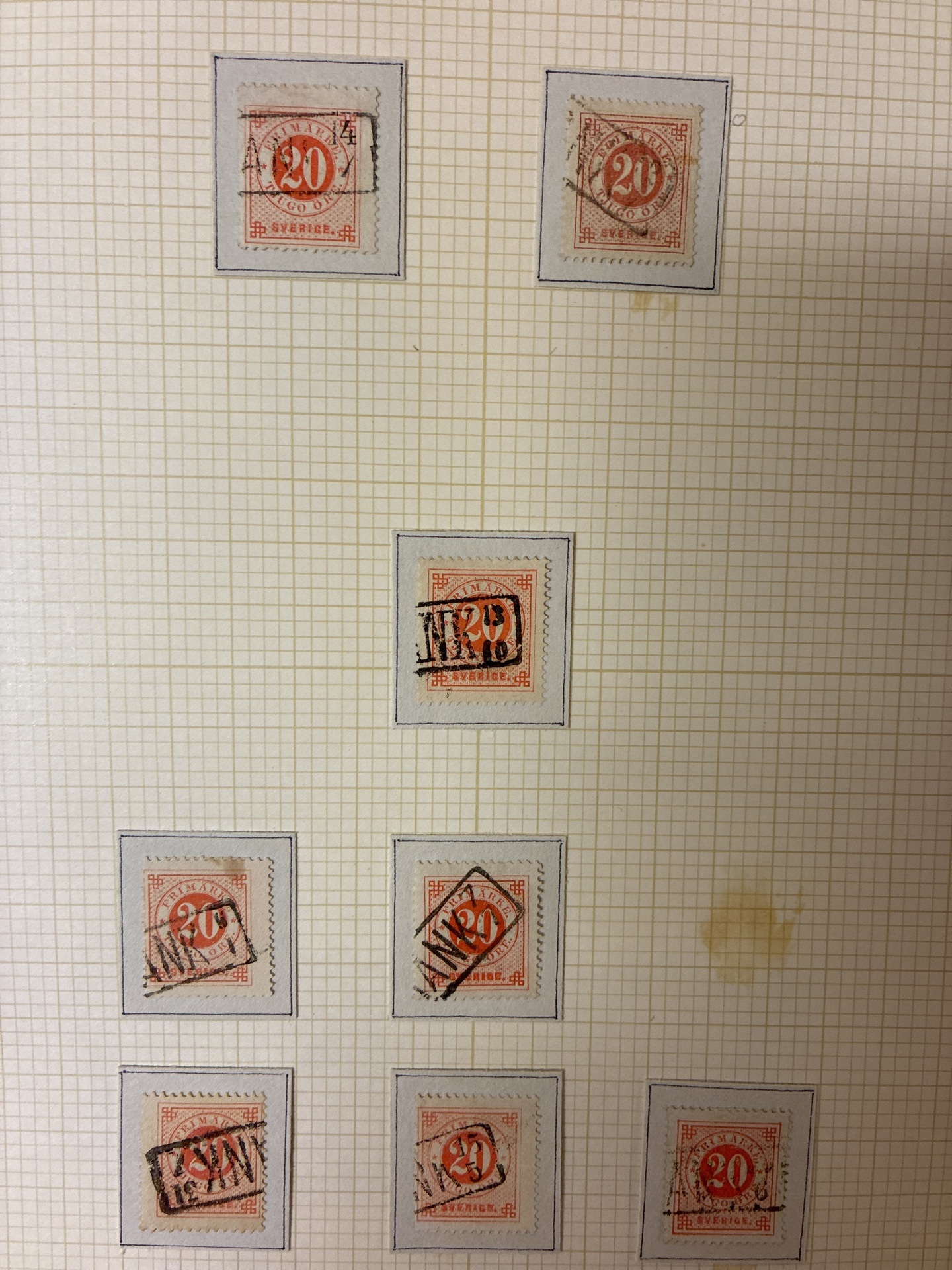 Sweden. Collection used 1858–1950 in album. Foreign cancellations on Swedish stamps. Nice old collection. Please see a selection of scans at www.philea.se. Mostly fine quality. (ca. 100)