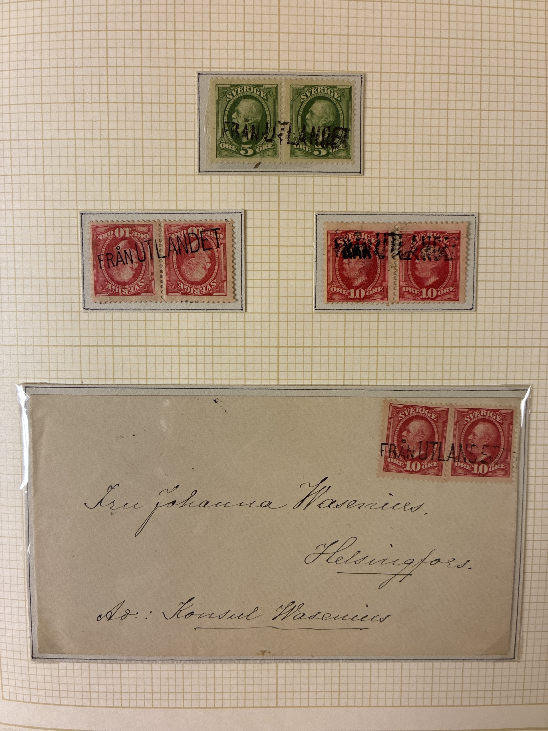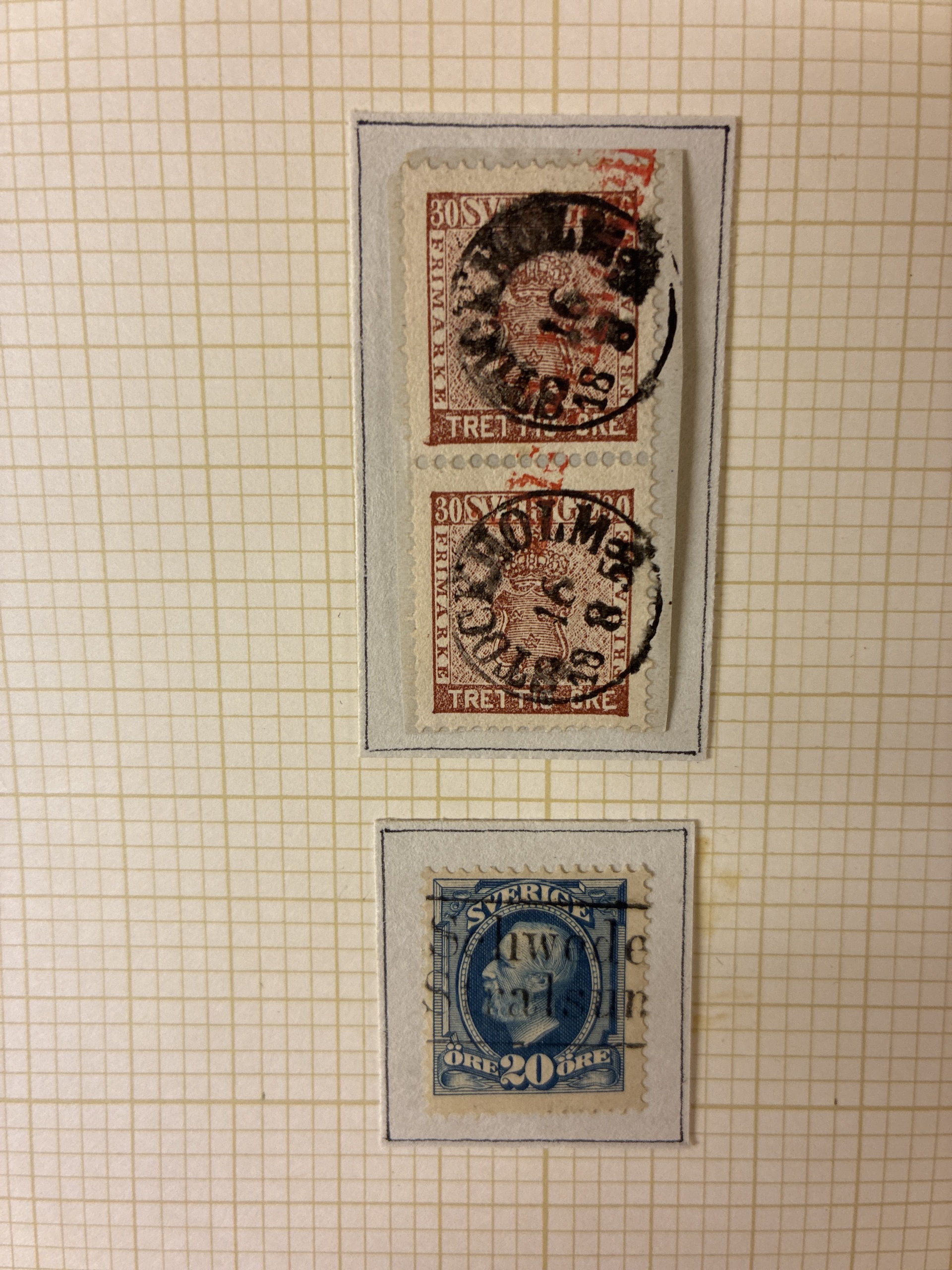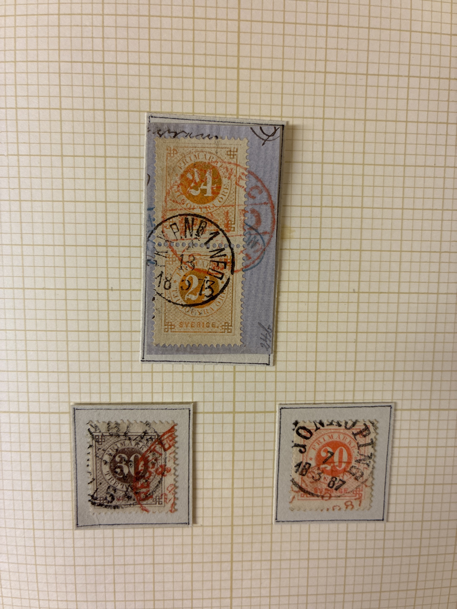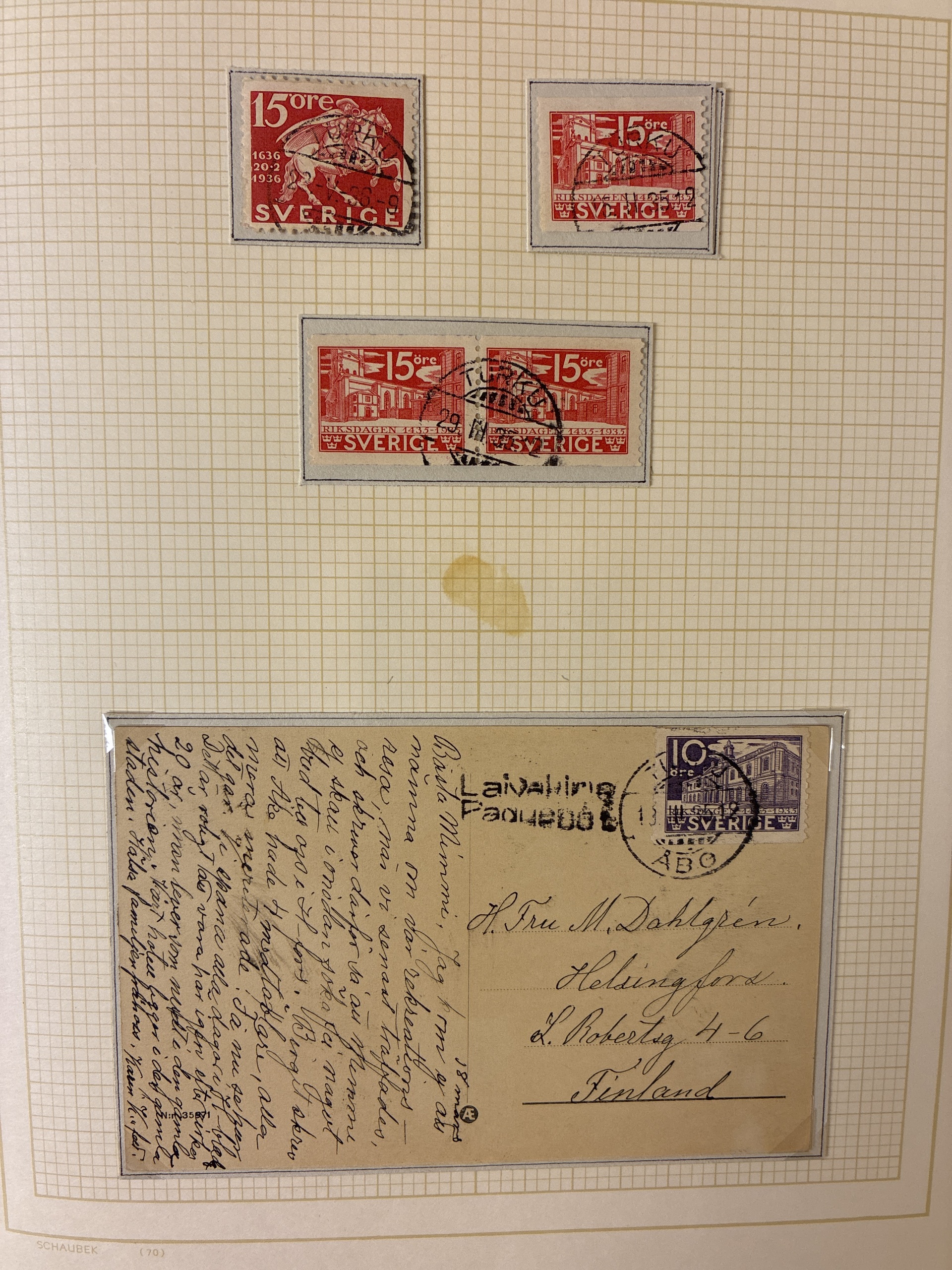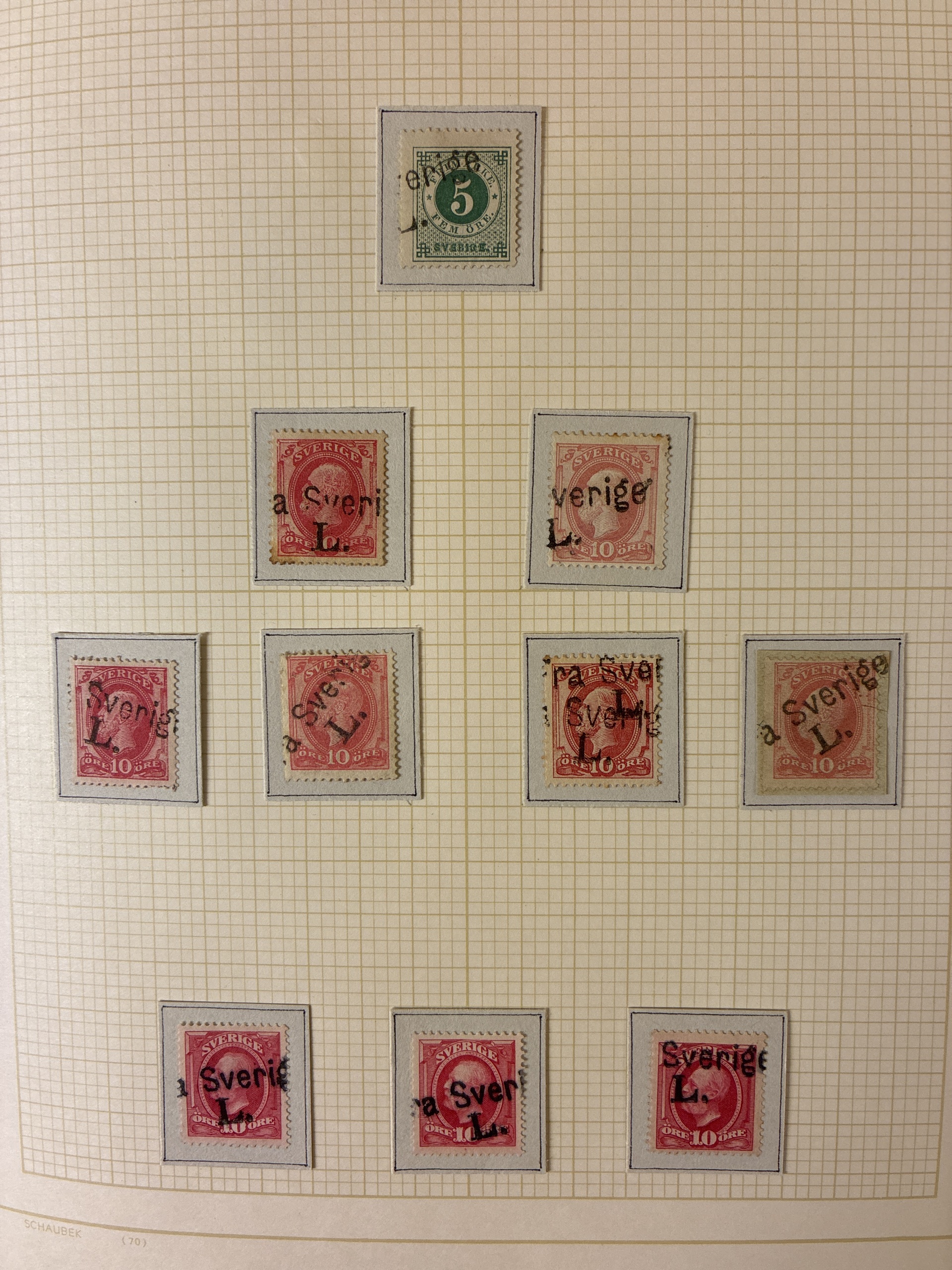 Sweden. Collection used 1858–1950 in album. Foreign cancellations on Swedish stamps. Nice old collection. Please see a selection of scans at www.philea.se. Mostly fine quality. (ca. 100)