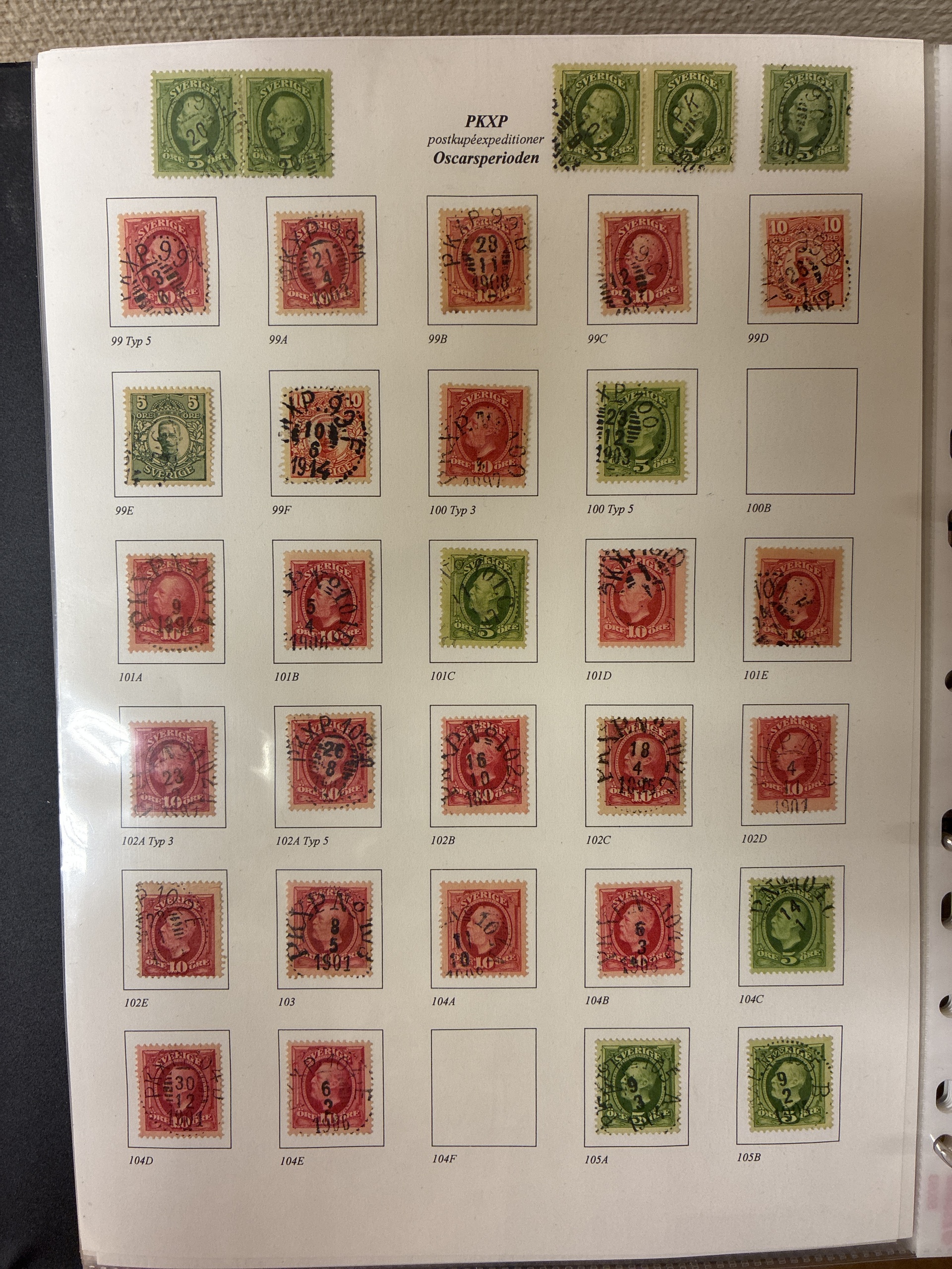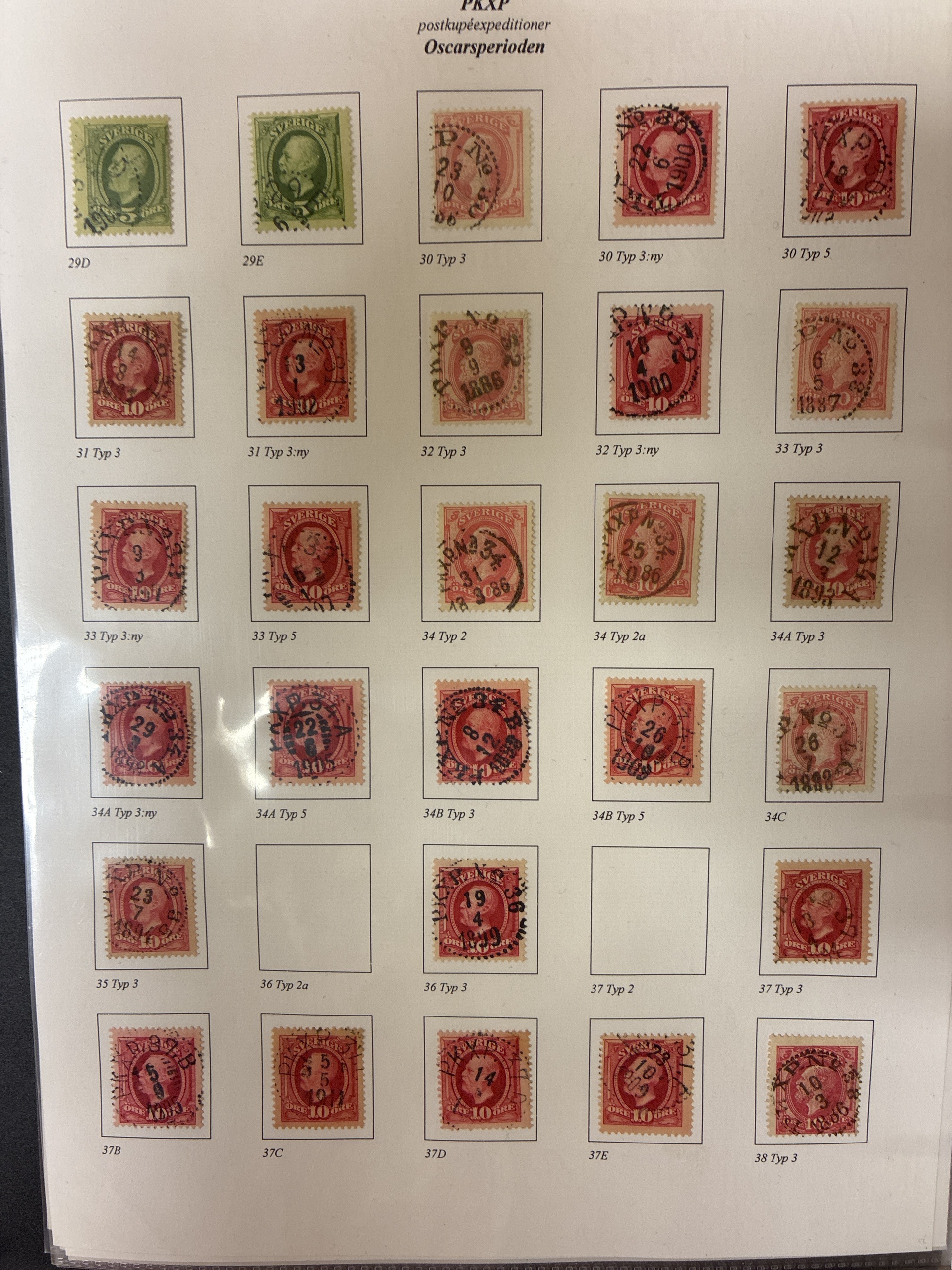 Sweden. Collection used 1885–1911 in album. Railway mail PKXP and PLK on Oscar II. Quite well filled. Neat collection. Please see a selection of scans at www.philea.se. Mostly fine quality. (>1000)