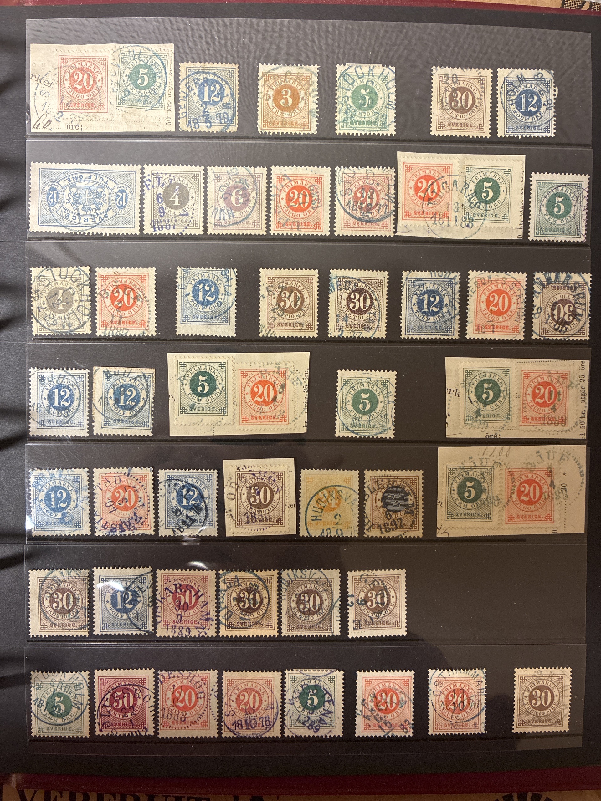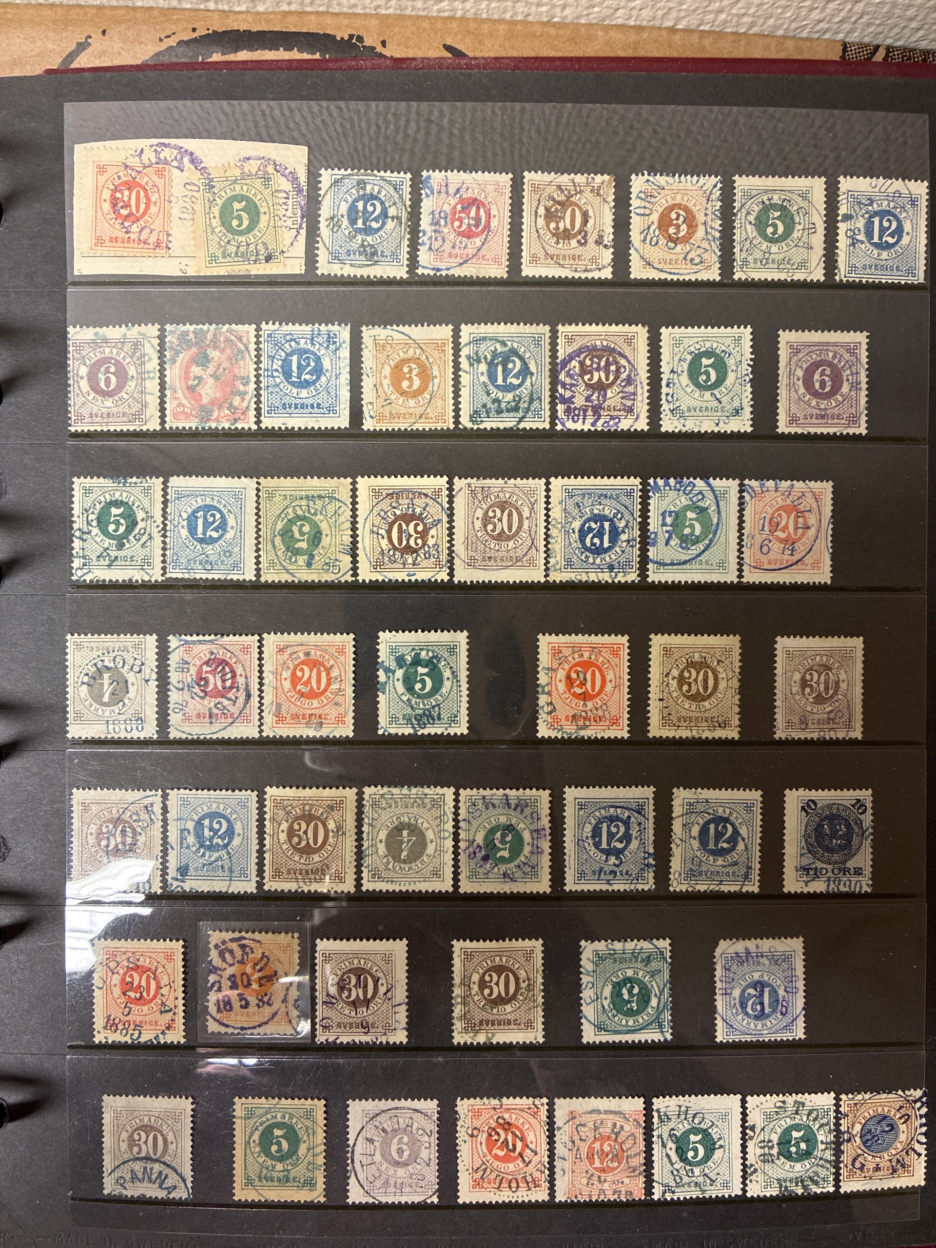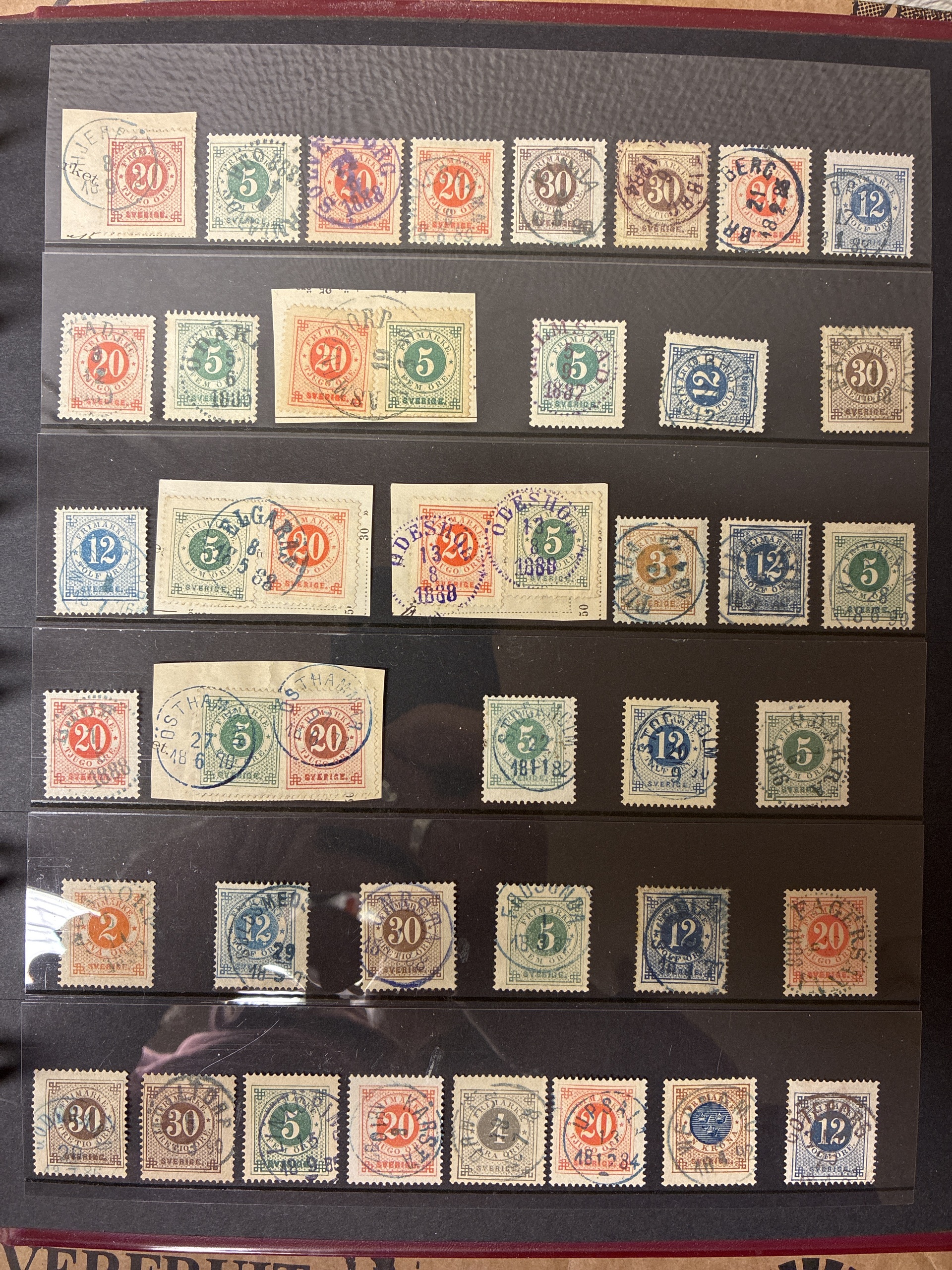 Sweden. Sweden Used accumulation 1876–1900 in visir album. Coloured cancellations mostly on Circle type. Mostly good quality (>200). The entire lot is presented at www.philea.se.